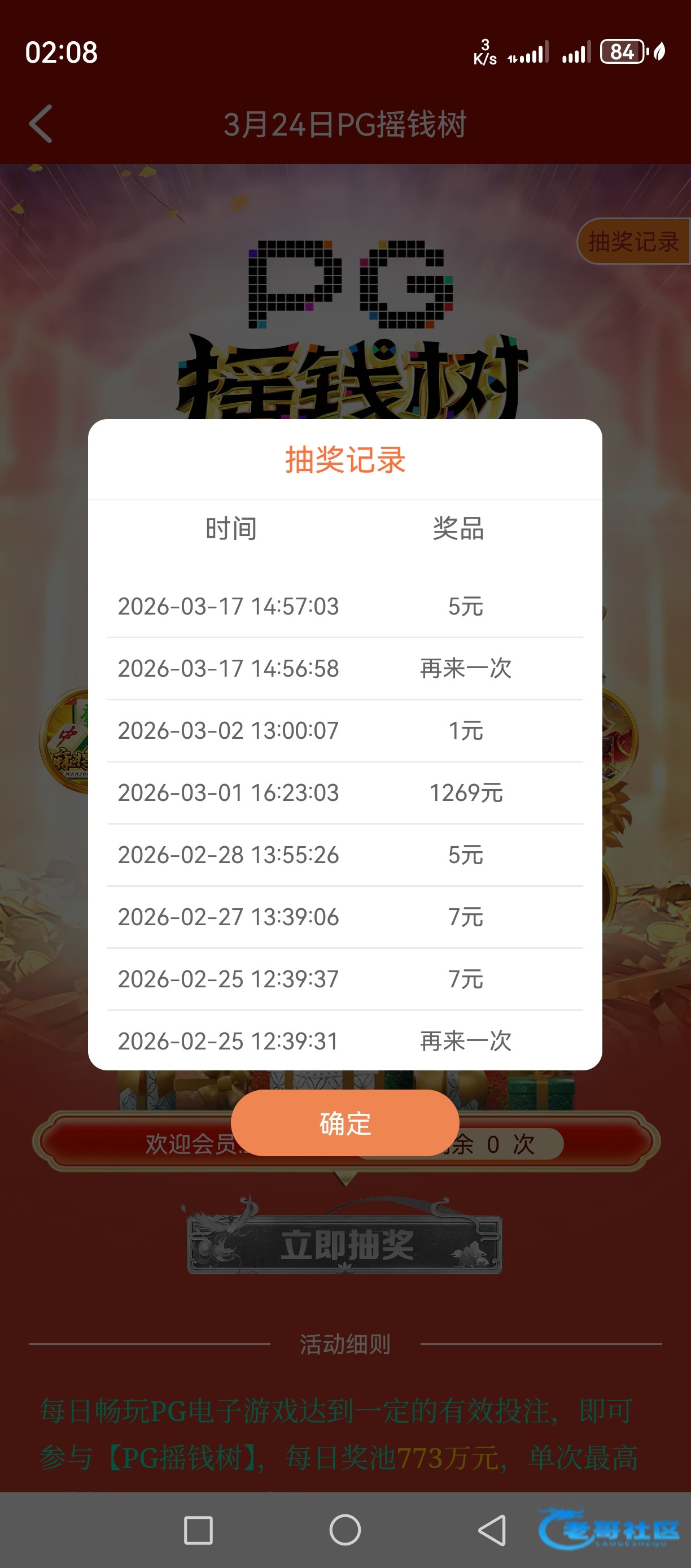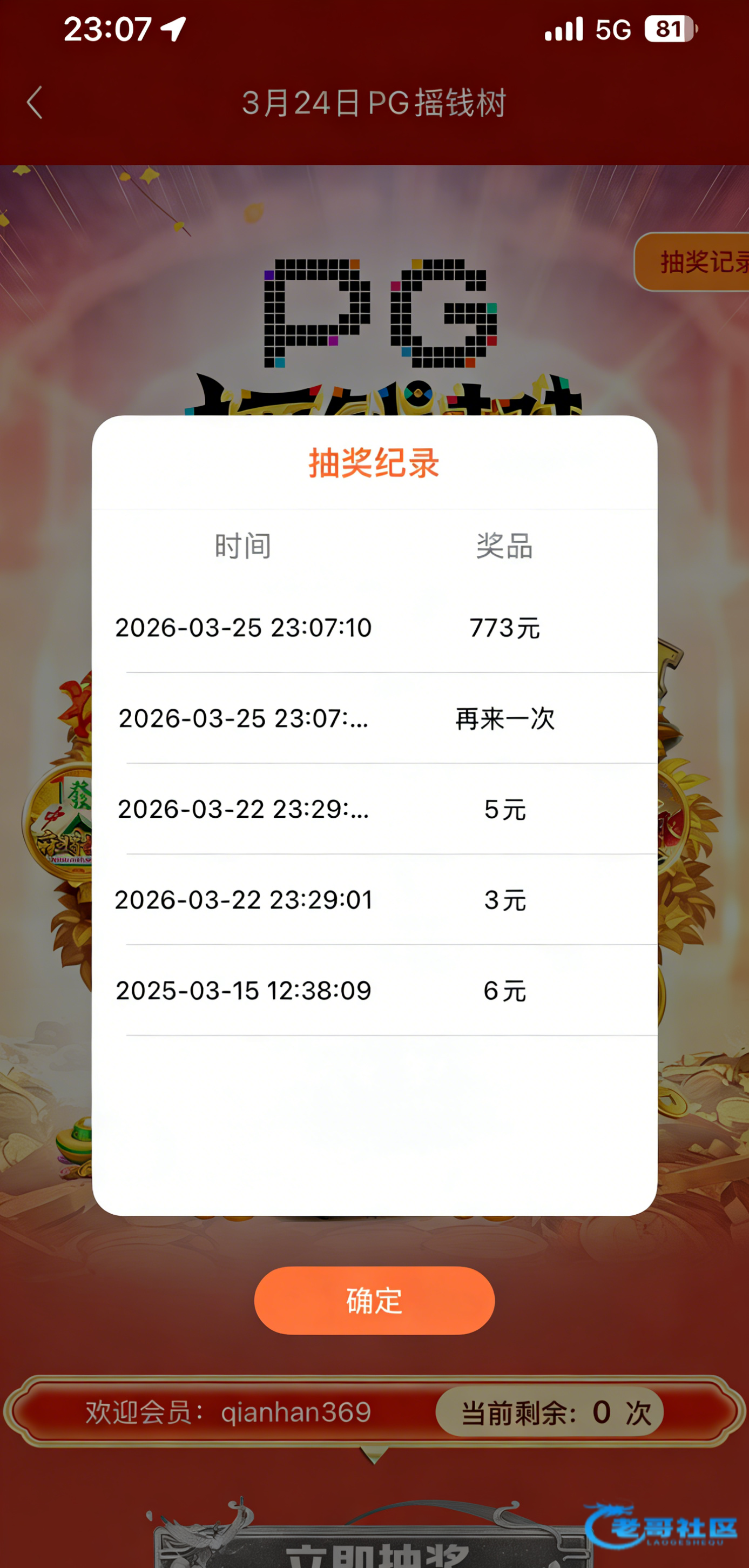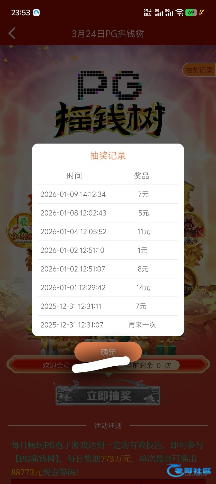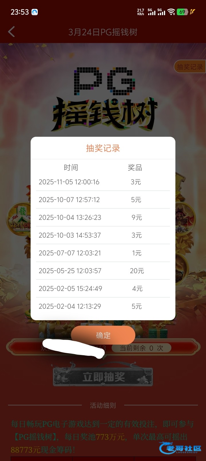 精彩系列第一场摇到这么大的红包,还是773有水一点