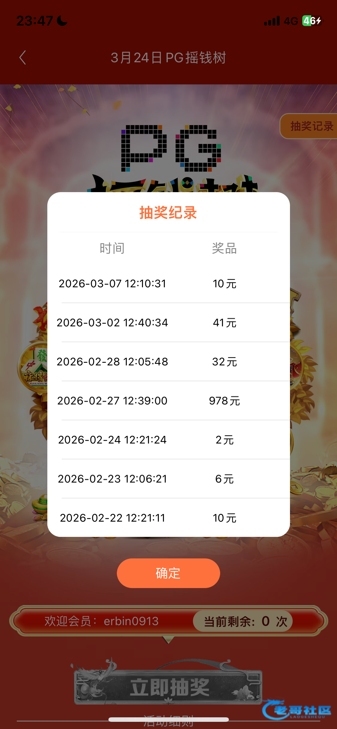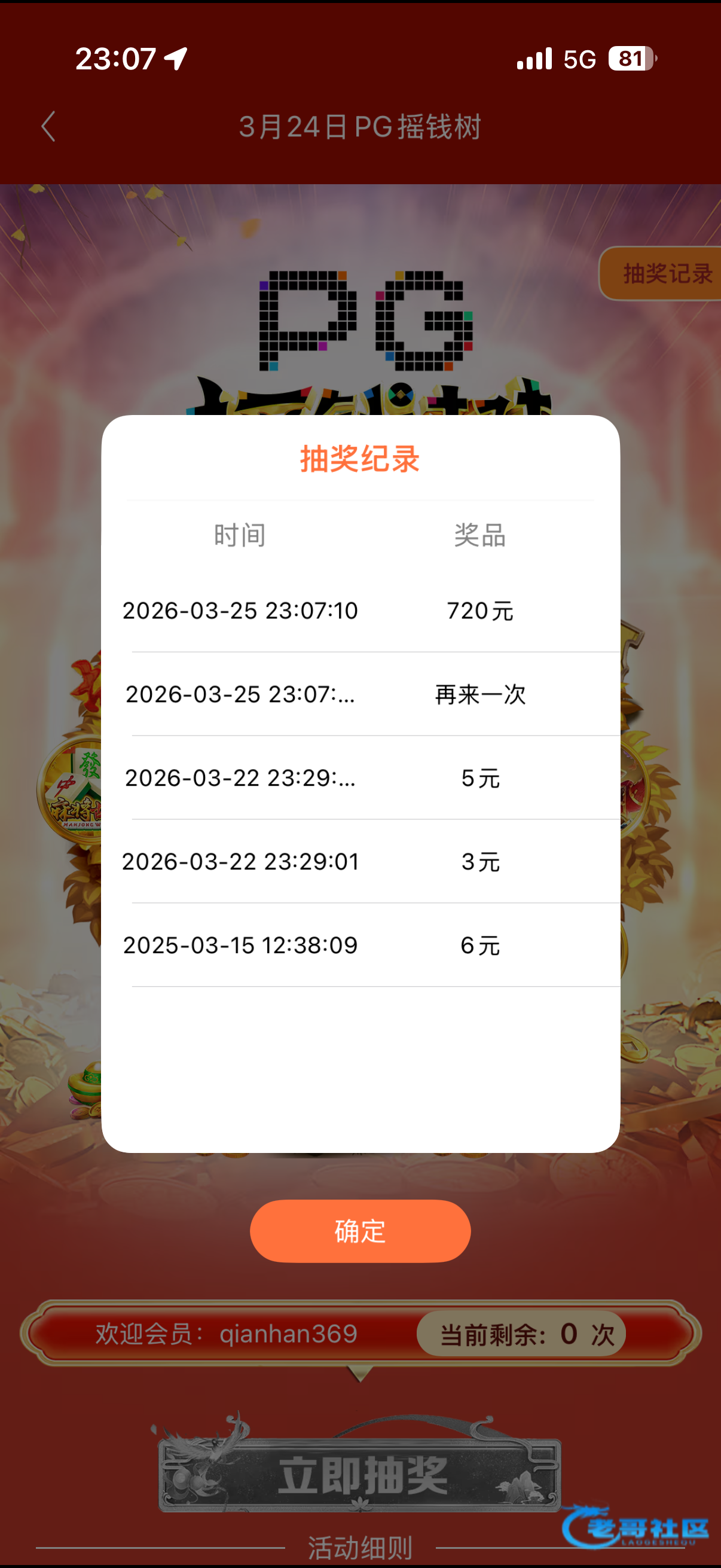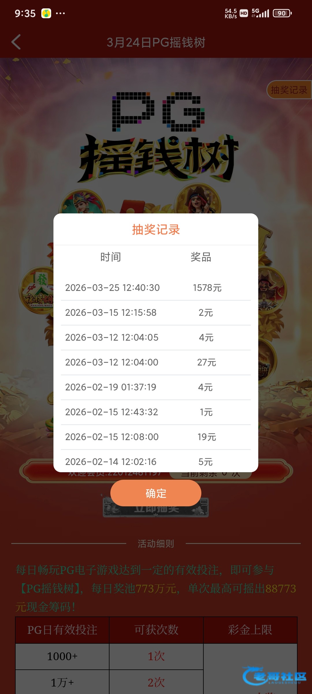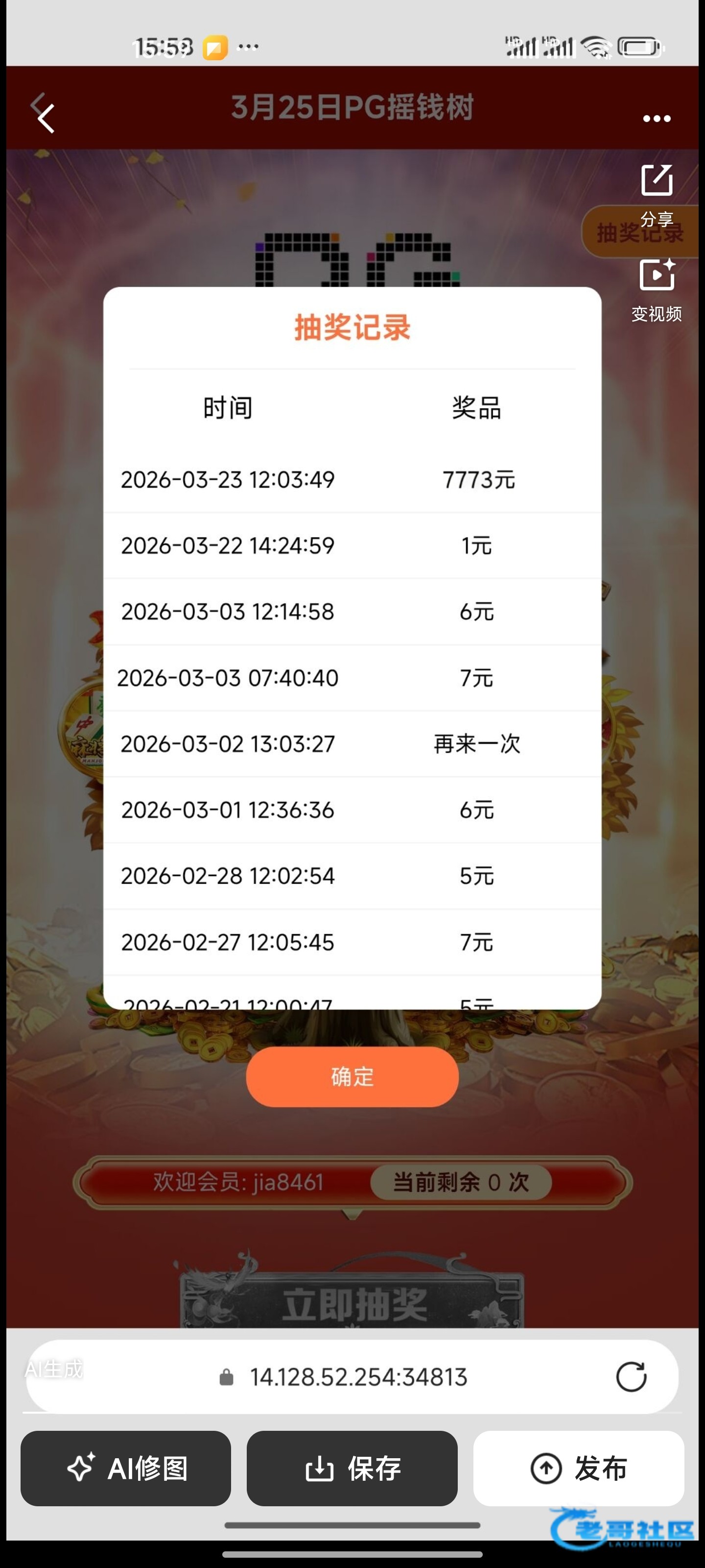 精彩系列第一场摇到这么大的红包,还是773有水一点
