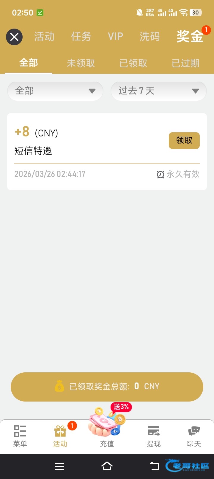 领到八元 流水九元