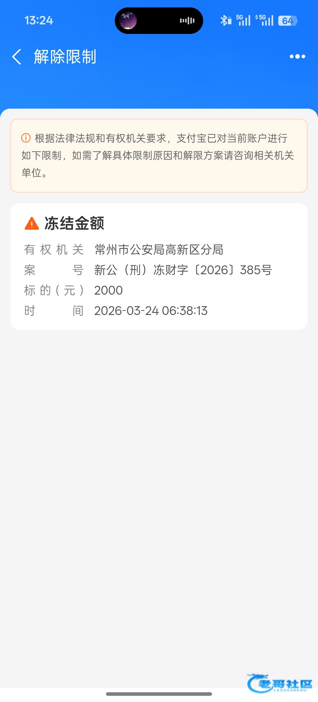 前两天冻结一次48小时自动解冻了现在又冻还标注2000元 求助一下各位老哥