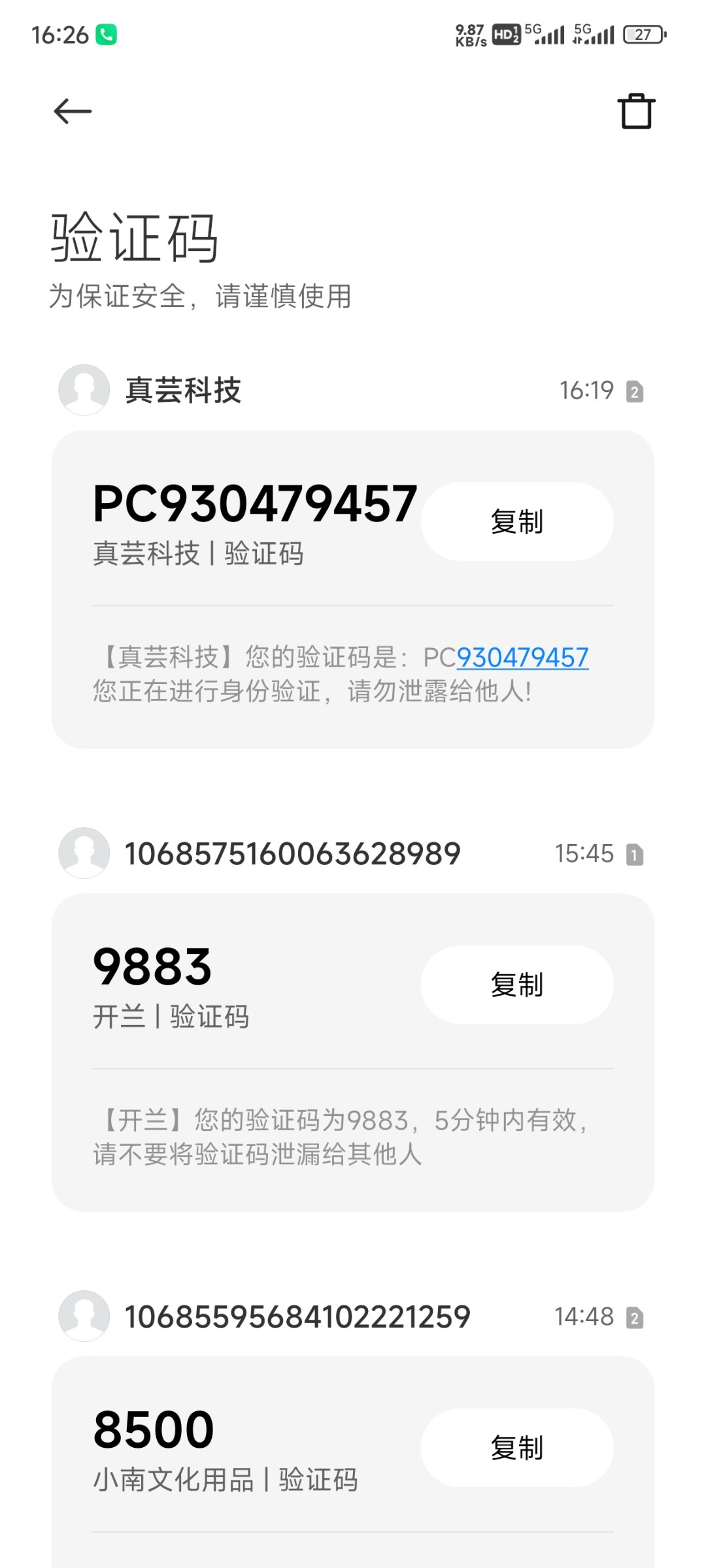 送了,我有短信去的,一没