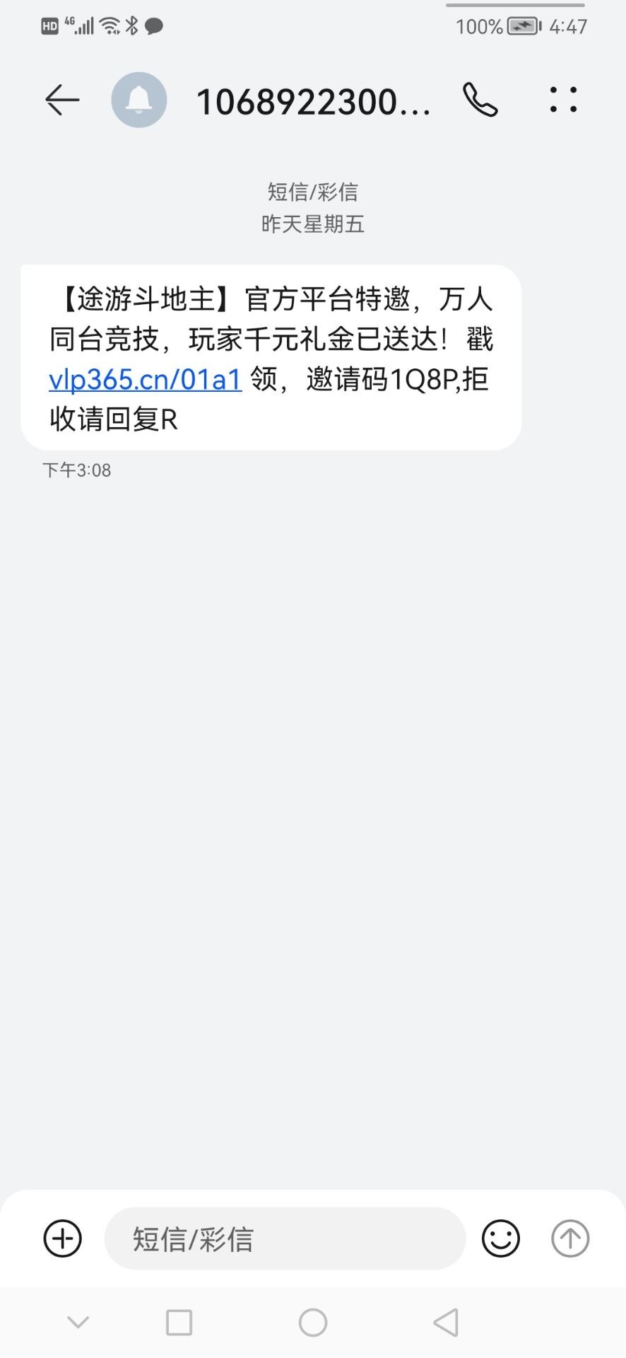 我也收到这个短信,但是网址好像被黑了,老铁能不能把客服聊天的网址发一下