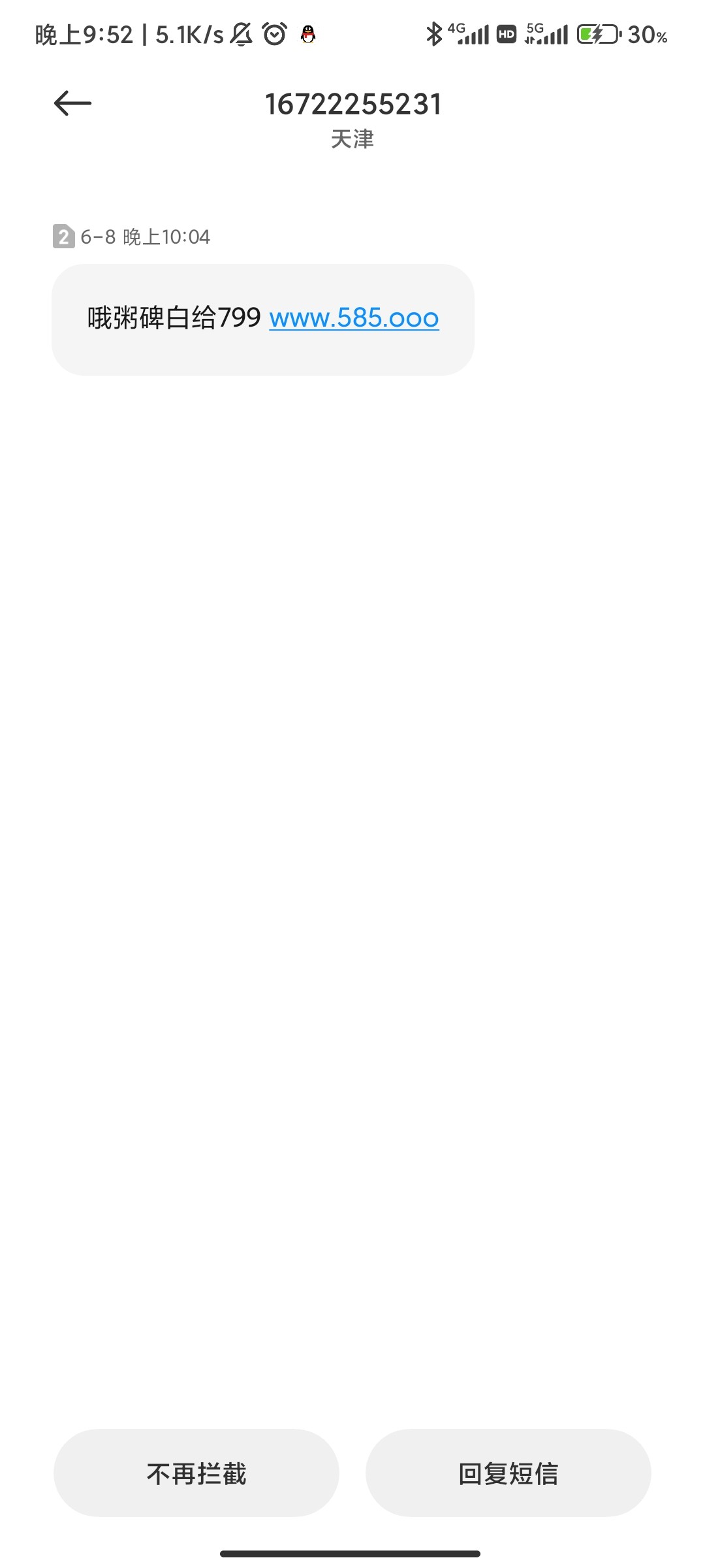 我去。我今天收到这个短信了。没理他