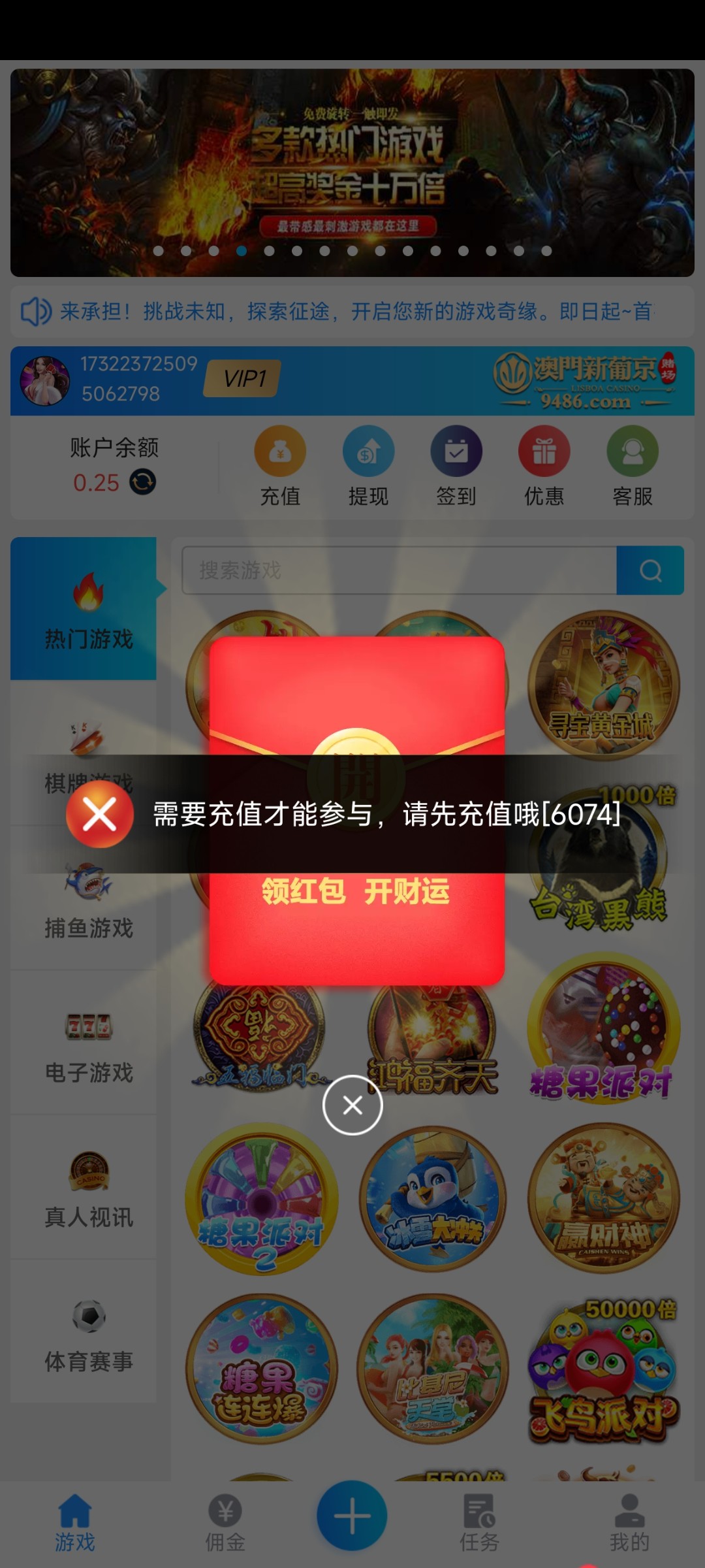 登录提示充值才能领