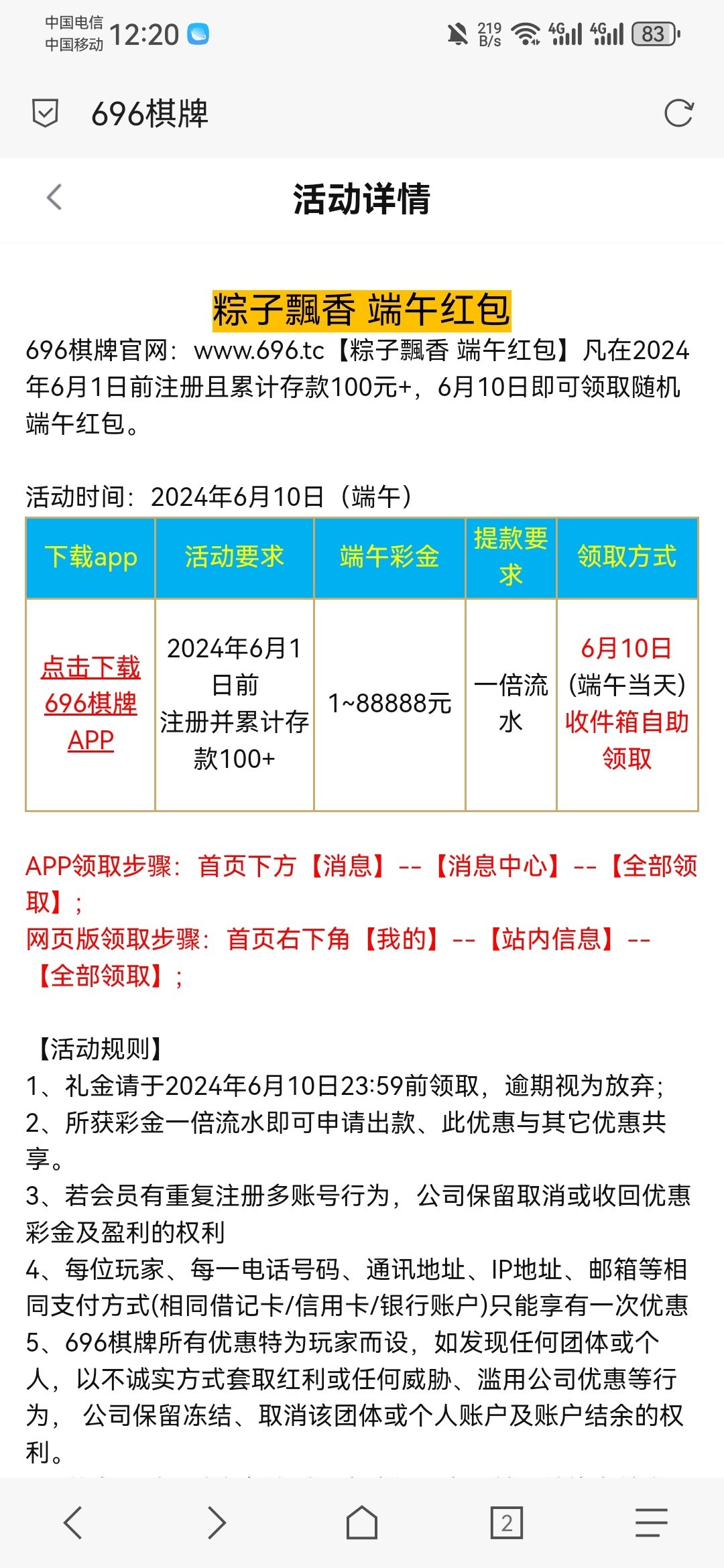 老用户之前充值过的登录就有,我领到5.88,链接696.cc
