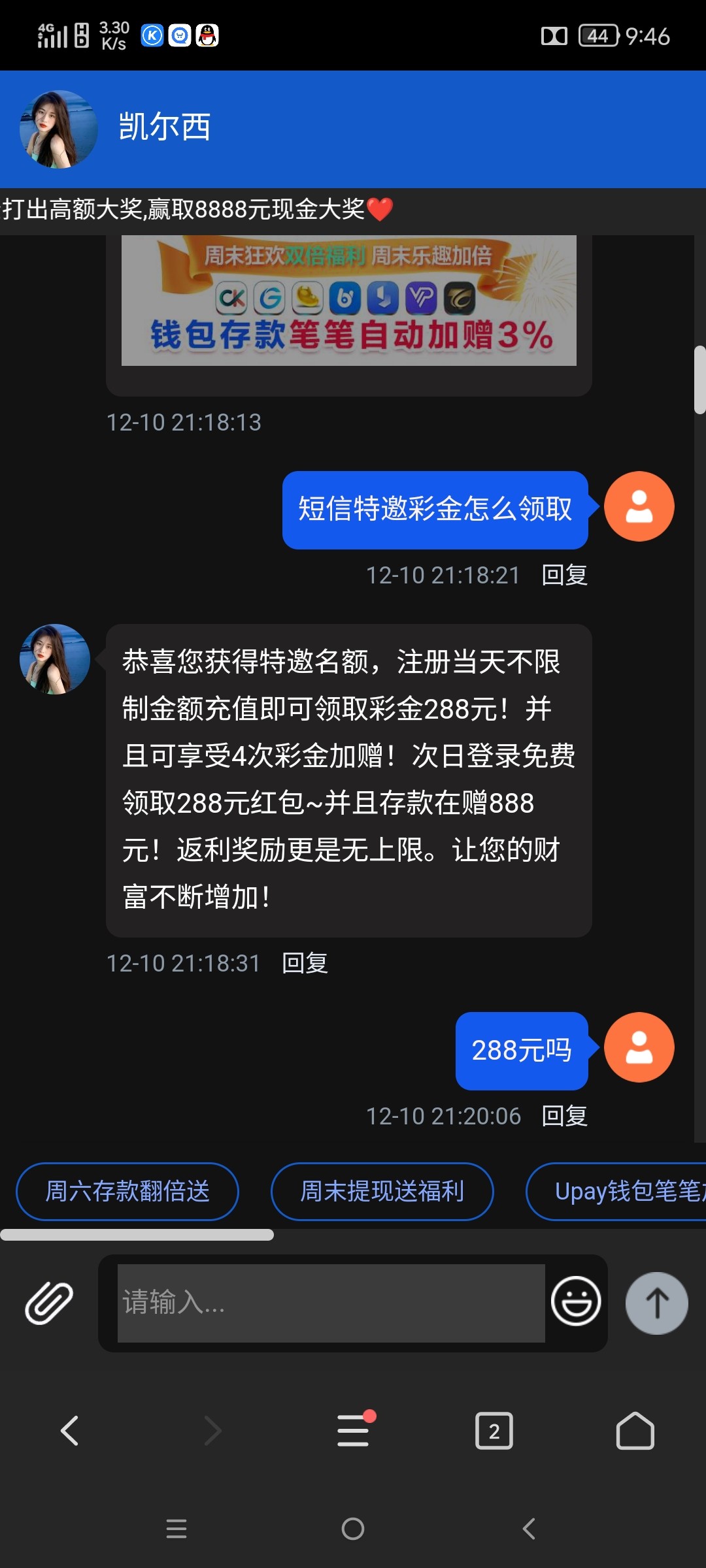 碰瓷短信特邀彩金有什么问题吗?