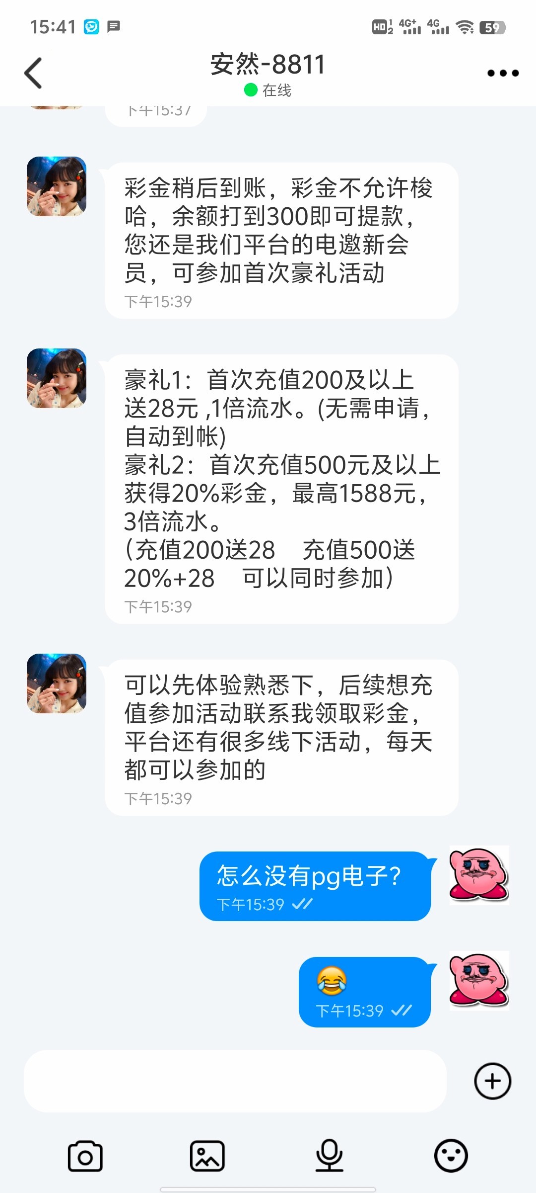 星河 ▶ 老宝lg00.cc 你们不用充值么?为啥告诉我要充值200 2024-6-12