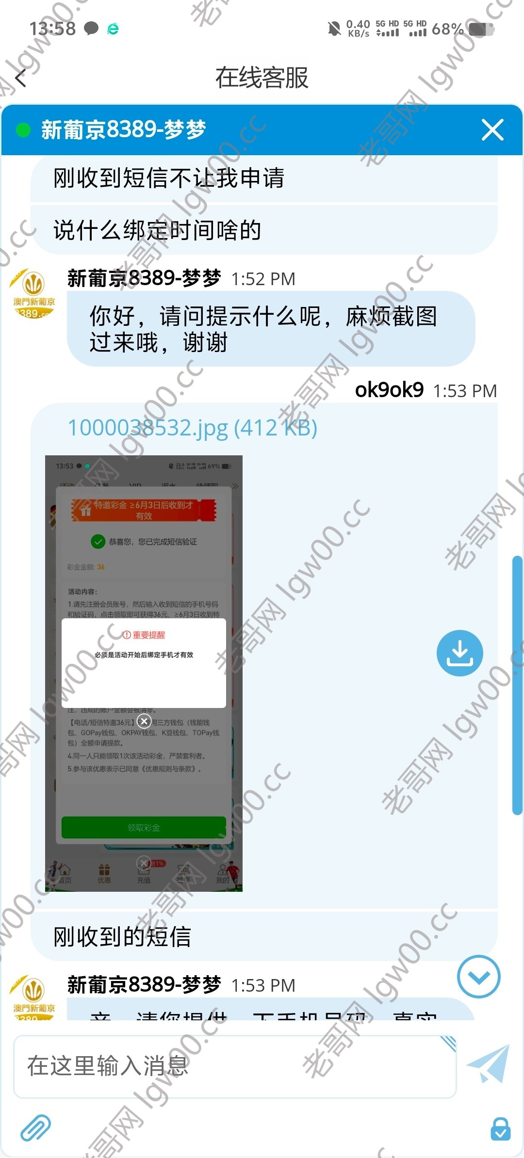 之前老哥发过的白菜碰瓷没碰到,刚才来了特邀短信下载app登录领取说绑定时间对不上,找客服申请让我重新登录领到了链接