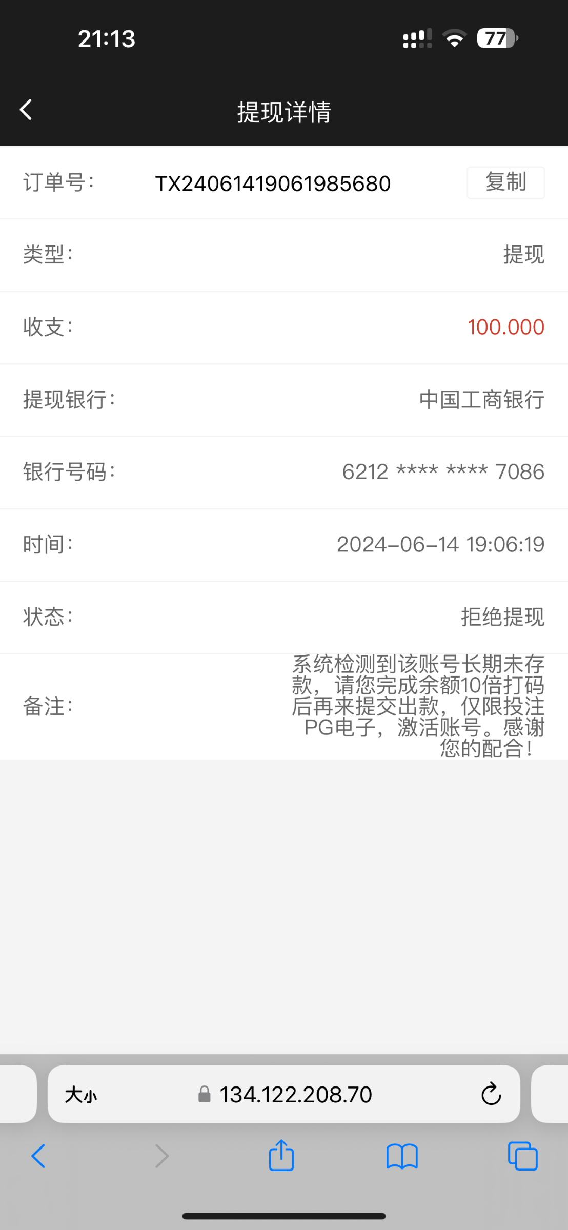 773杠10块钱干到200出款块一个小时没动静