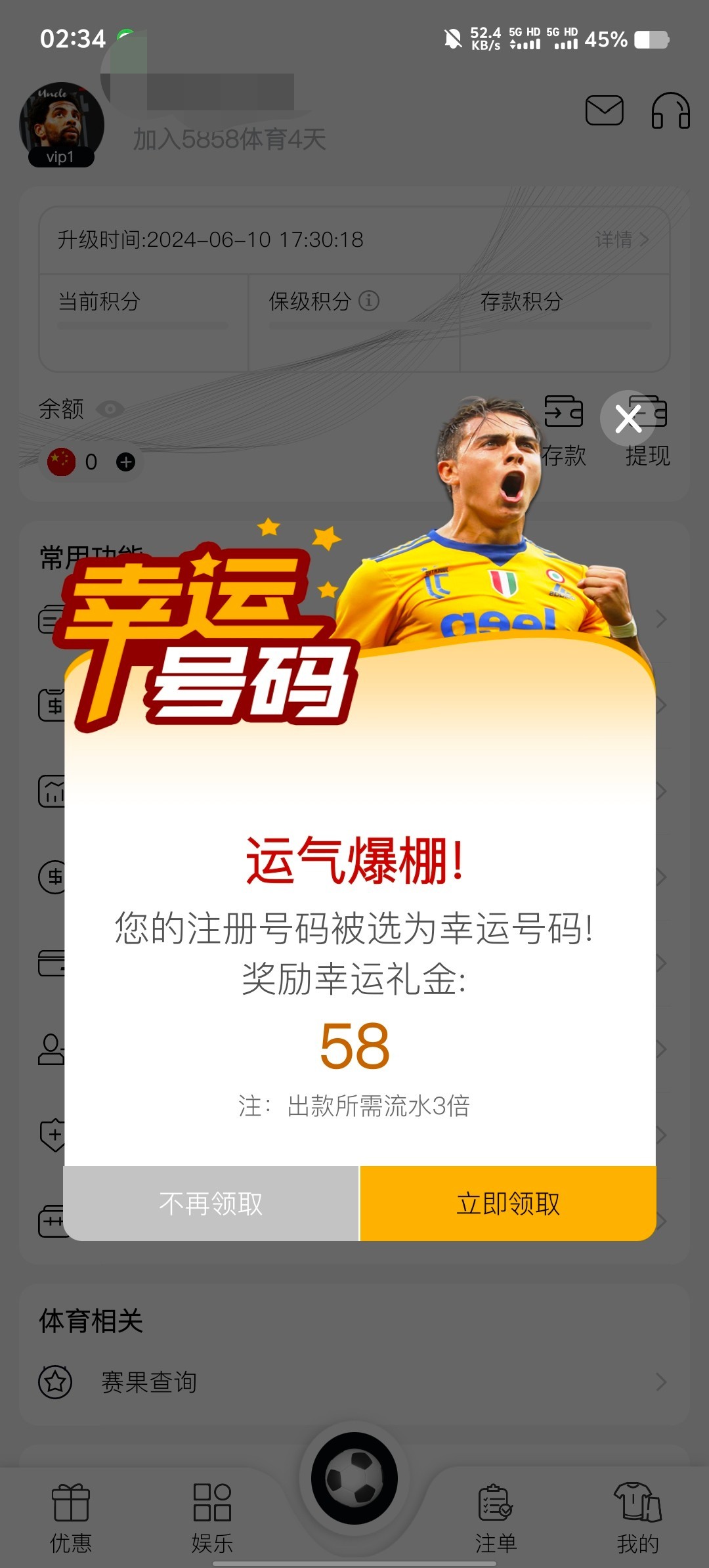 前几天有老哥发的5858体育,当时注册没送,今天闲着没事上去看了下,送了58彩金,注册了的老哥去看看送了没,