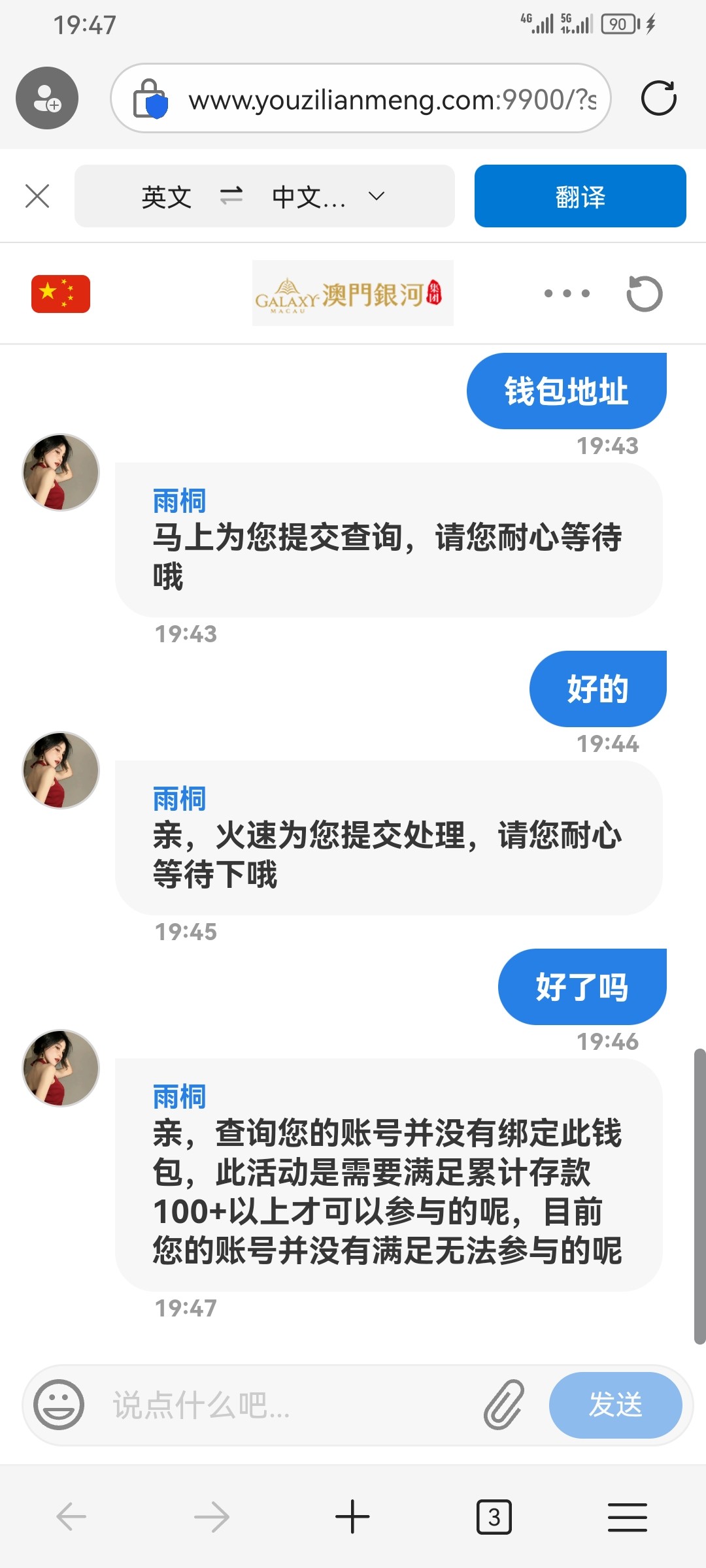 客服让提供彩金活动截图。。