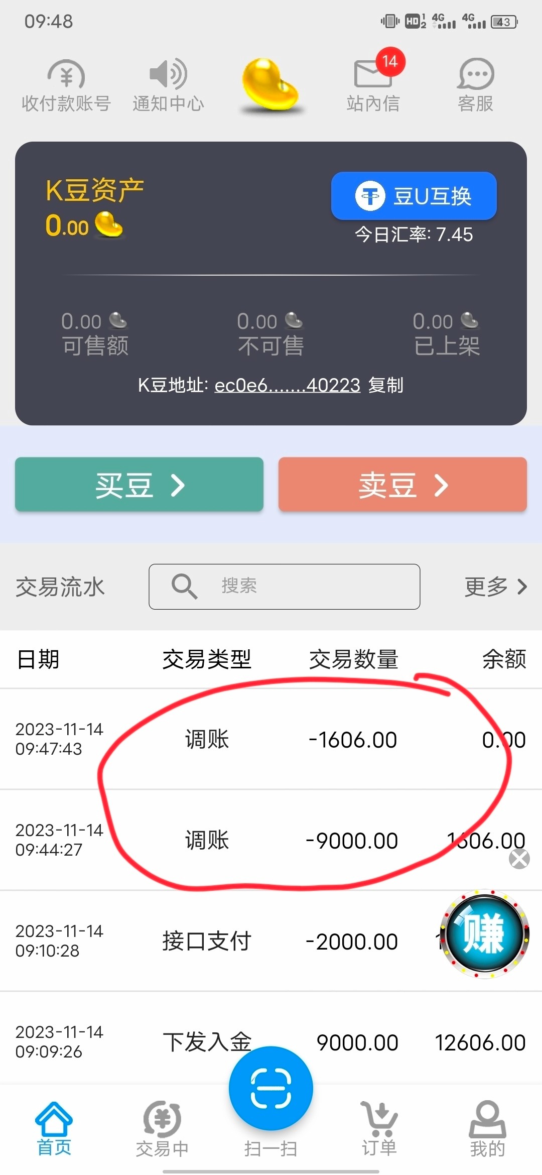 本人在娱乐平台提现10606到k豆钱包后,钱包的功能充值、卖币统统用不了,几分钟后上号一看余额已被清零,找客服也是不理人,有图有真相,先声明本人没有p图等违规操作。,虽然是去年的事了,但我还是要持续曝光这个黑钱包平台,让更多人知道k豆就是个黑平台。如果k豆钱包工作人员能看到此帖希望能够出来处理一下。