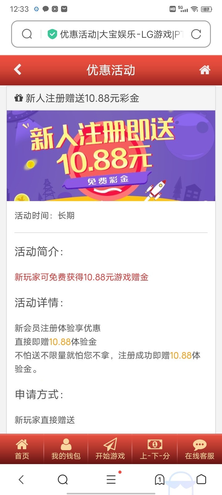 注册绑卡,自动赠送10.88,游戏额度手动划转,选择LG网页版,活动介绍打满500提现。