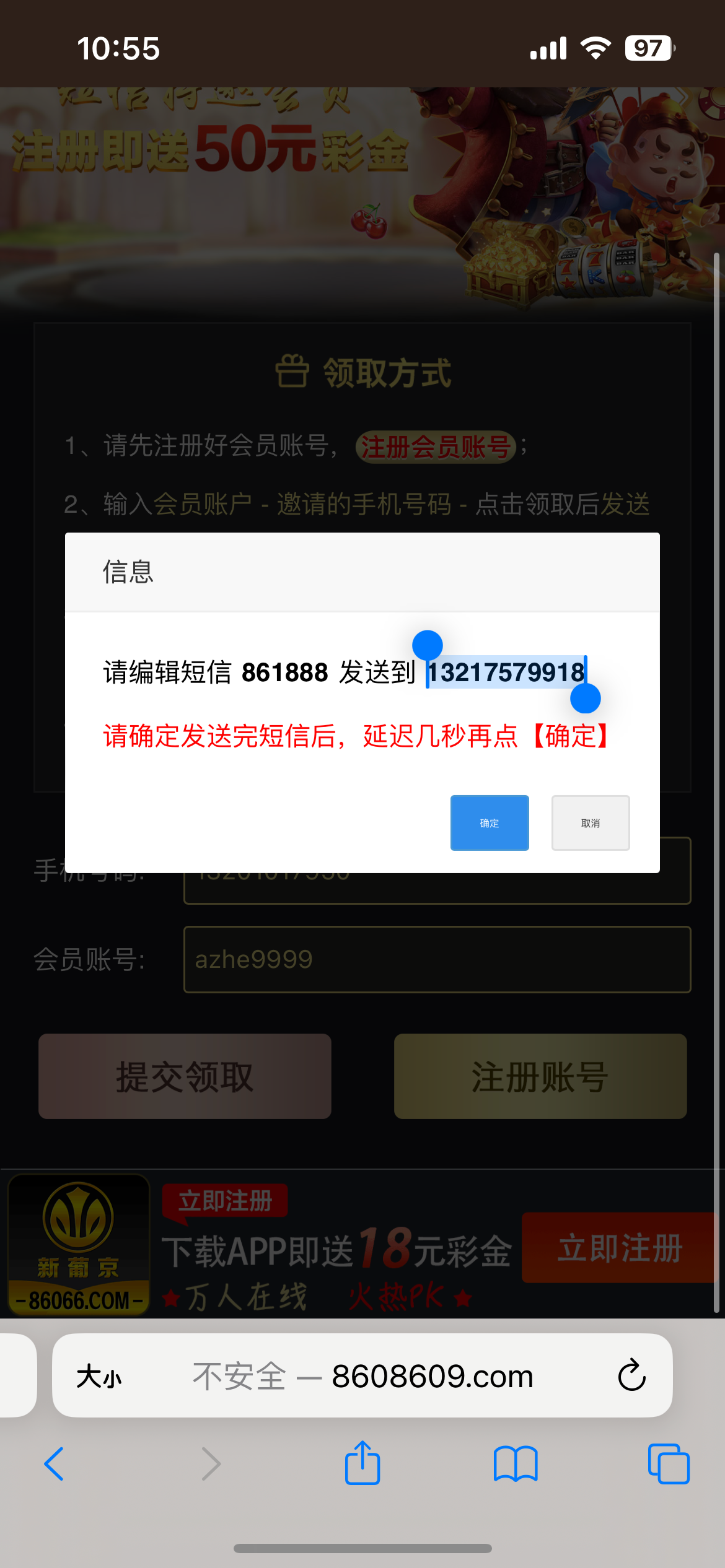 看看是特邀发短信秒到50/500提