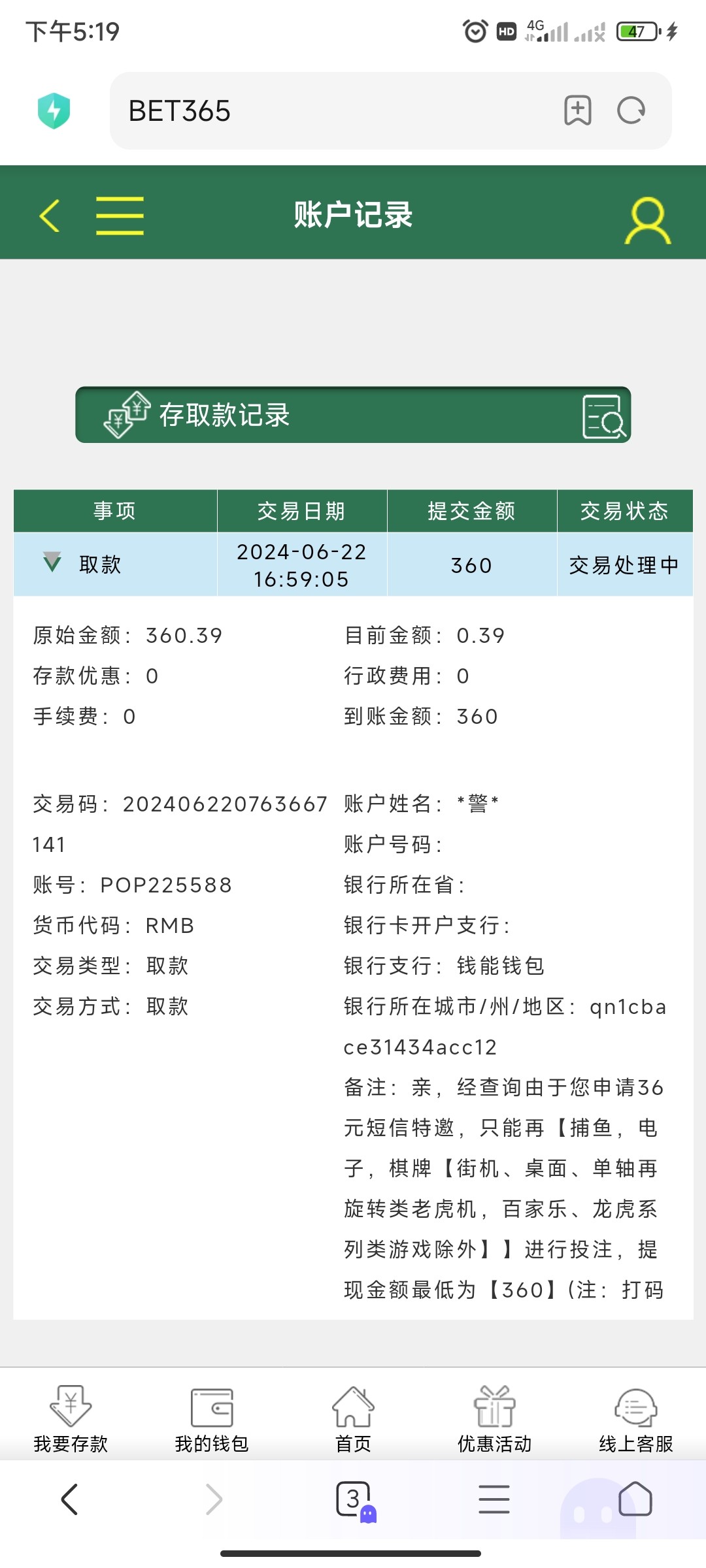 出款情况:自测(禁止充值)
