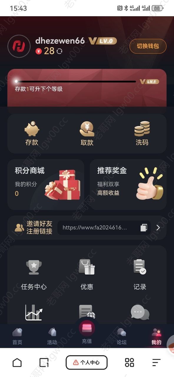 新用户注册绑卡完善信息,退出重新登录,然后去我的-任务中心自助领取28彩金,不限制游戏,300起提