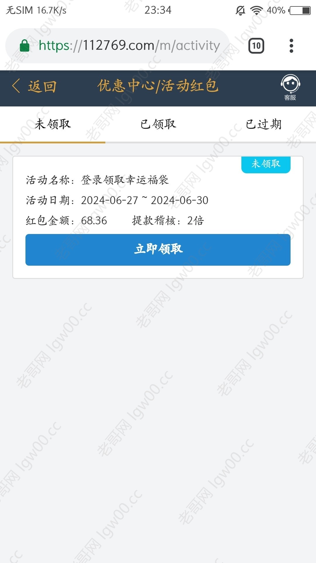 这月送两次了,自动送的我三两天登录下看有没有,官网 112769.com
