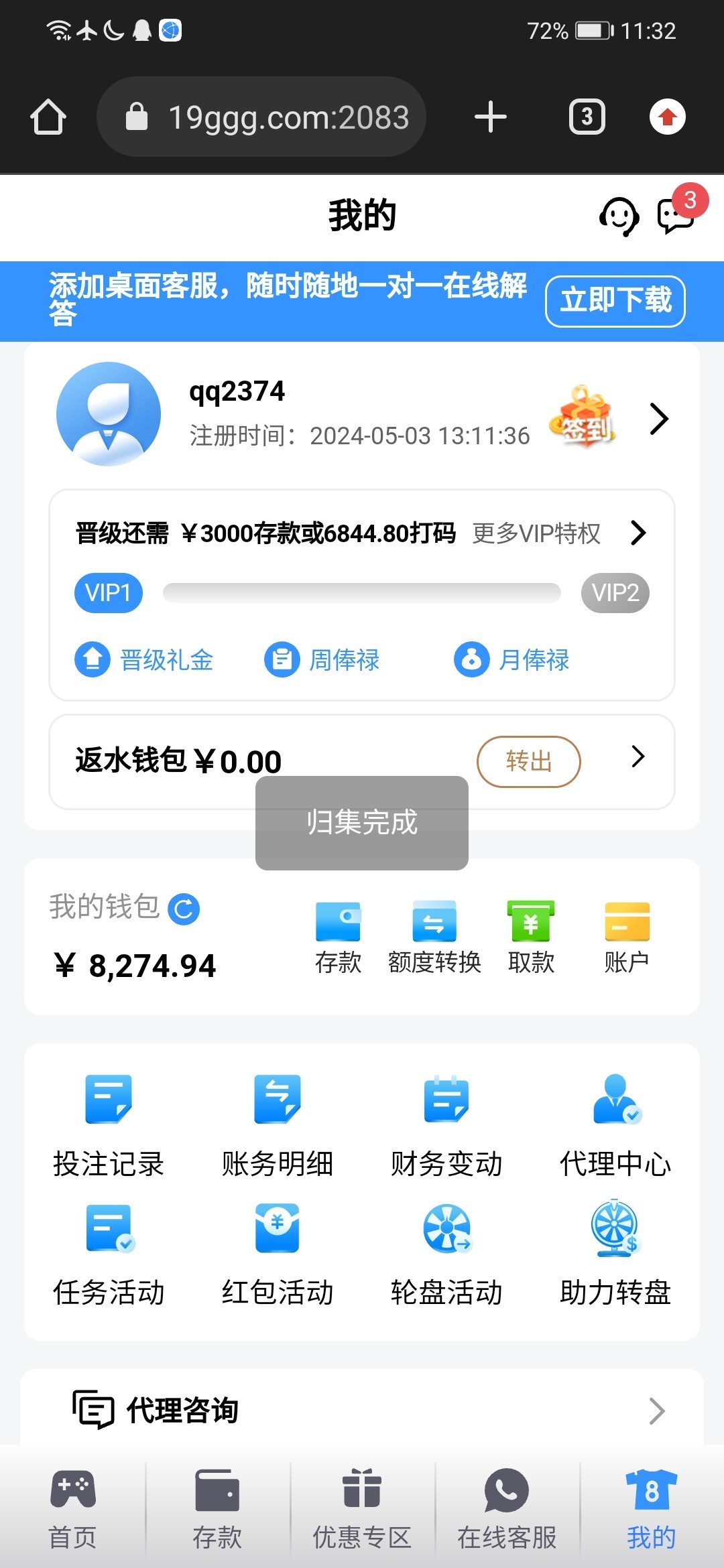 签到台子从6块一路梭哈百家乐,最高打上一万,唯一的高光时刻,可惜的是不能提现,也许是上天觉得我不配站起来吧