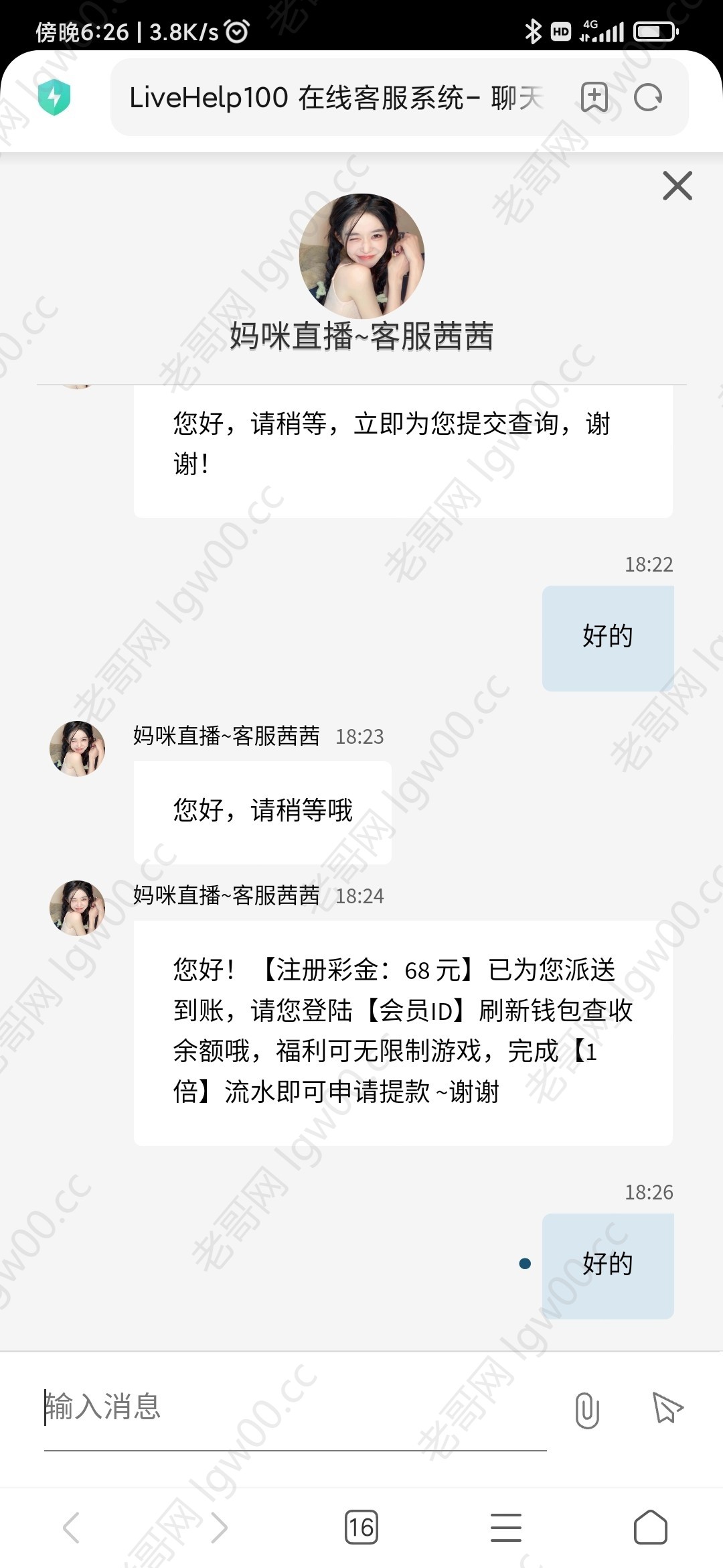 我是打电话来的,但是申请他发的是注册彩金,可以去碰一下,提300到了 网址看图