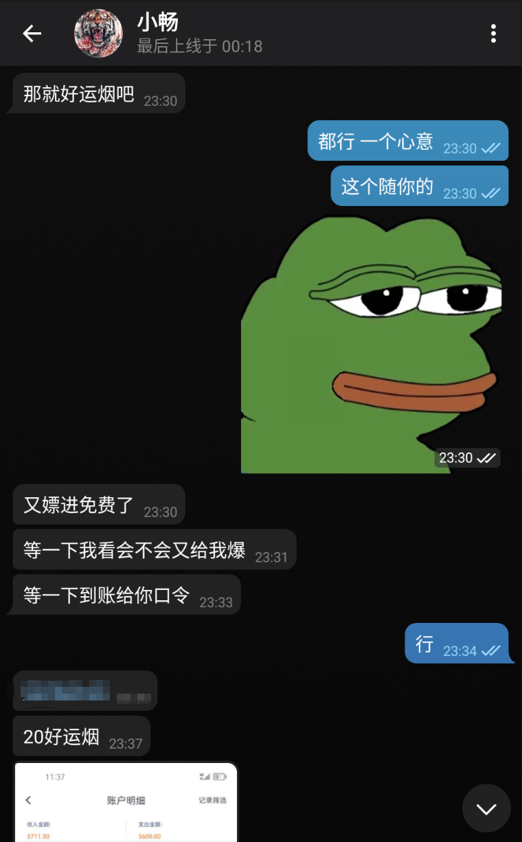 结束后带上消息截图找老哥拿现金