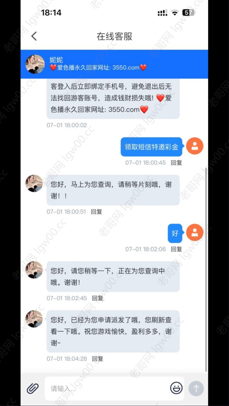 注册找客服,说领取短信特邀彩金送38 地址 3550.com