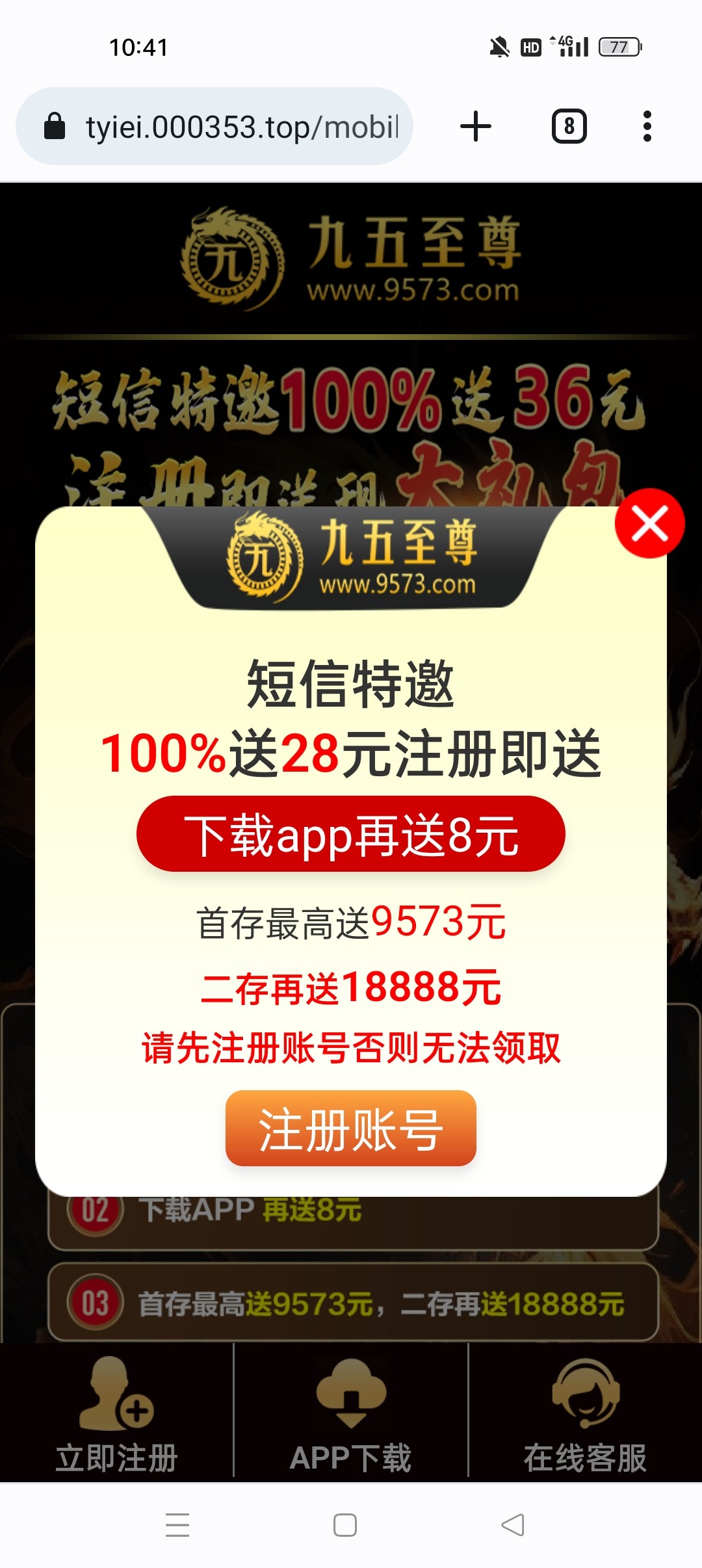 九五至尊,短信特邀碰瓷送36,收到短信的去优惠自助申请