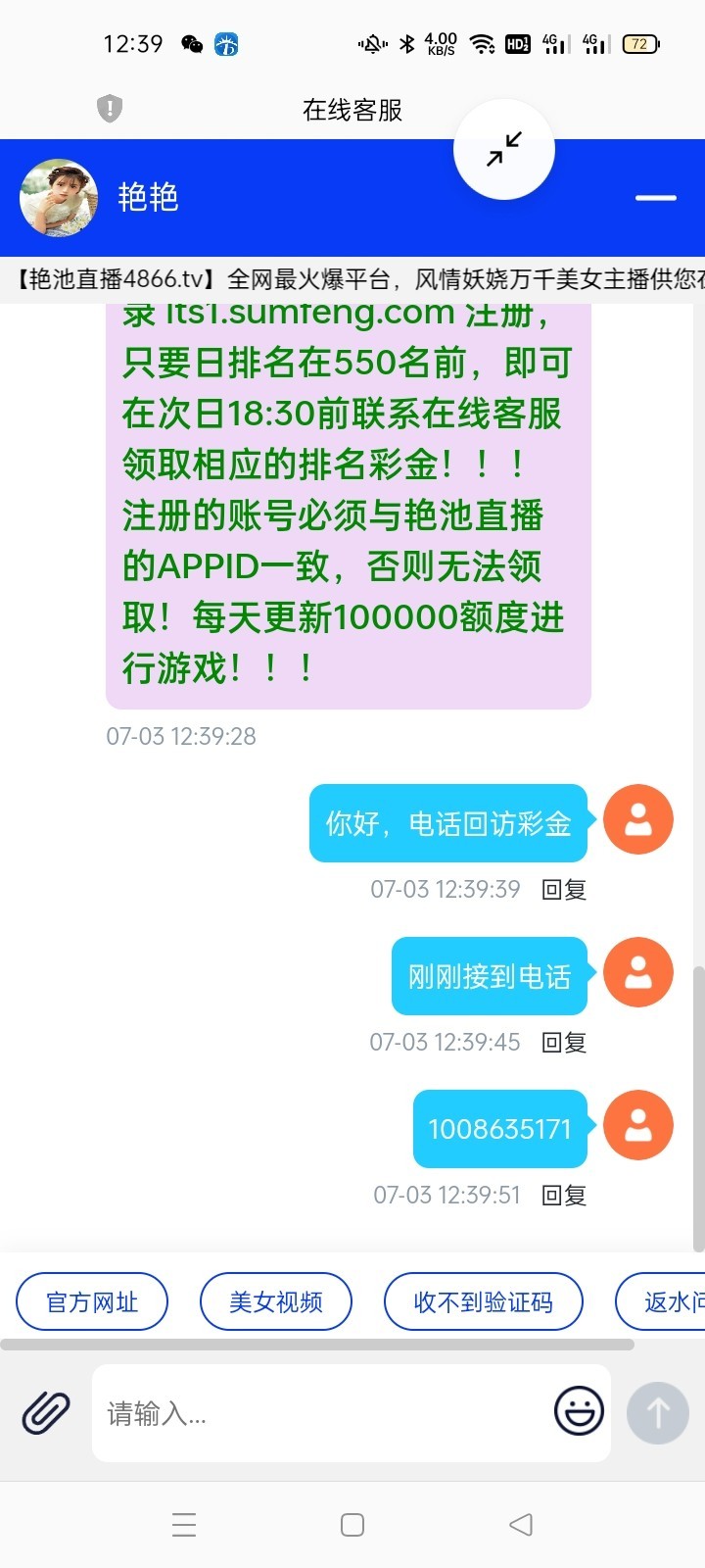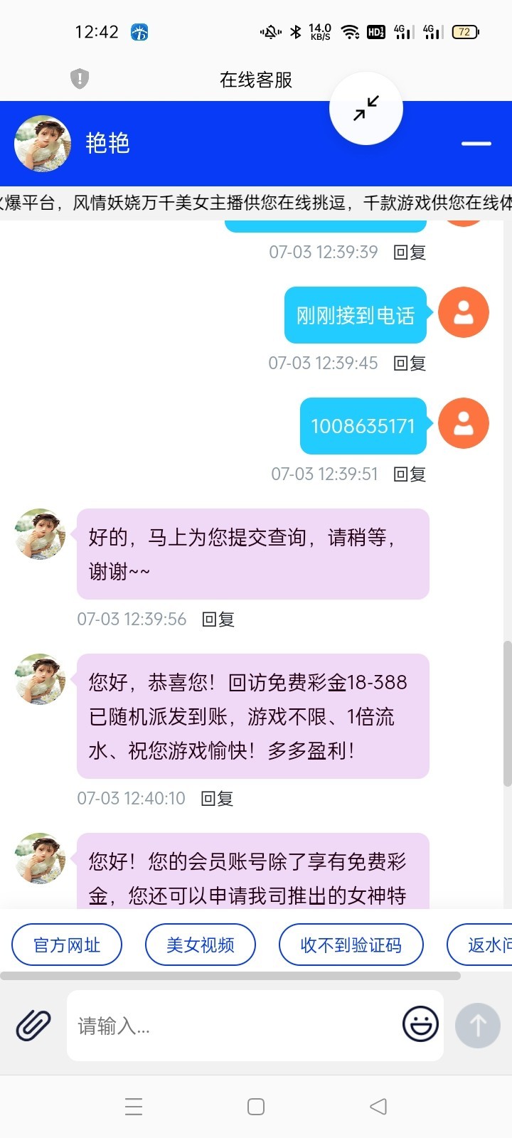 艳池直播5月份注册的,当时也是想碰碰特邀的,没碰到就卸载了,没有充值,今天给我打电话说送回访彩金,5730.app