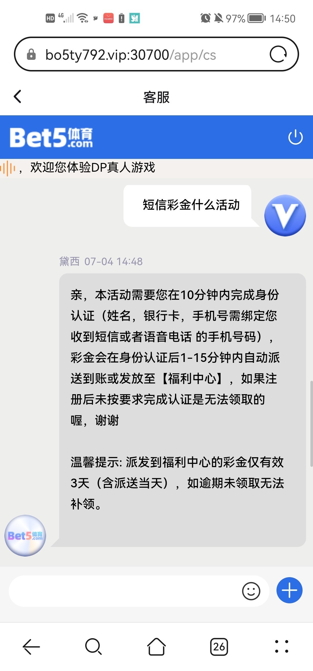送彩金3元,玩到100不让提现!垃圾平台,注意避雷