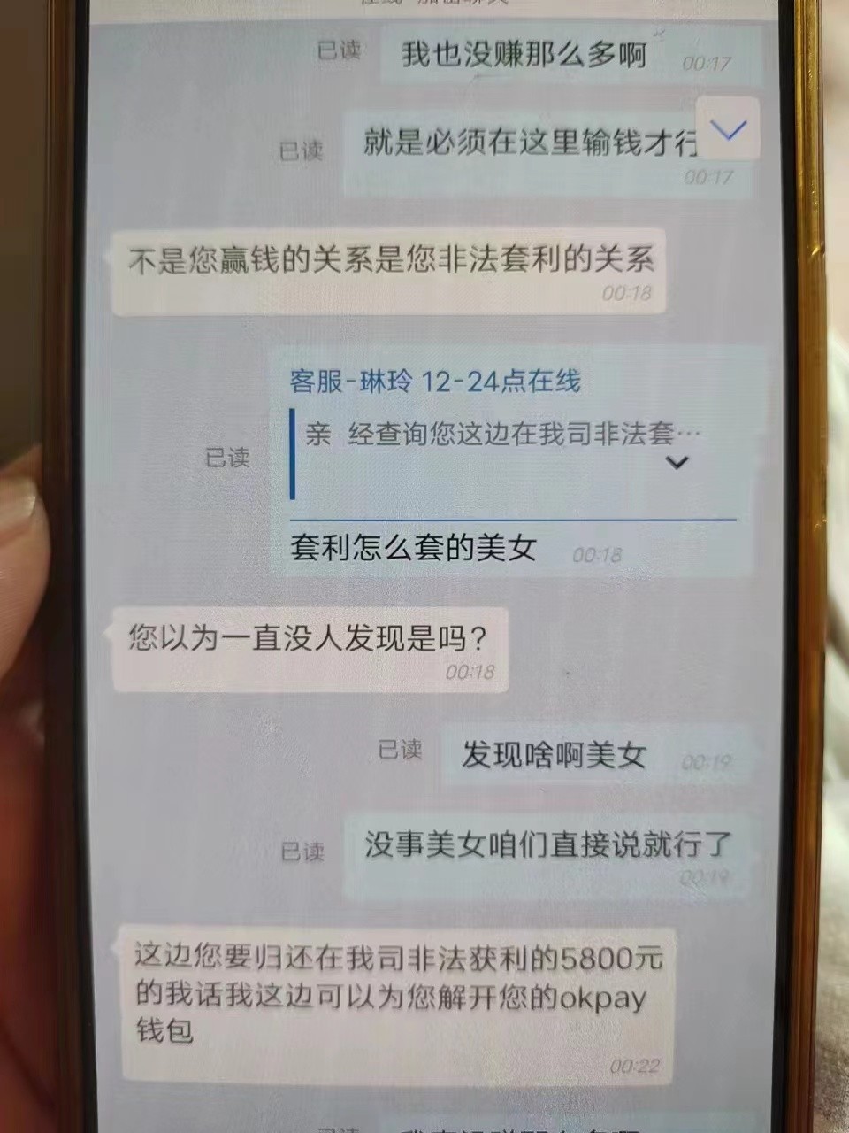 没有,是被在别的平台赢钱了,然后被他叫OK封了,说要给我解要把我封的钱赢的钱还给他