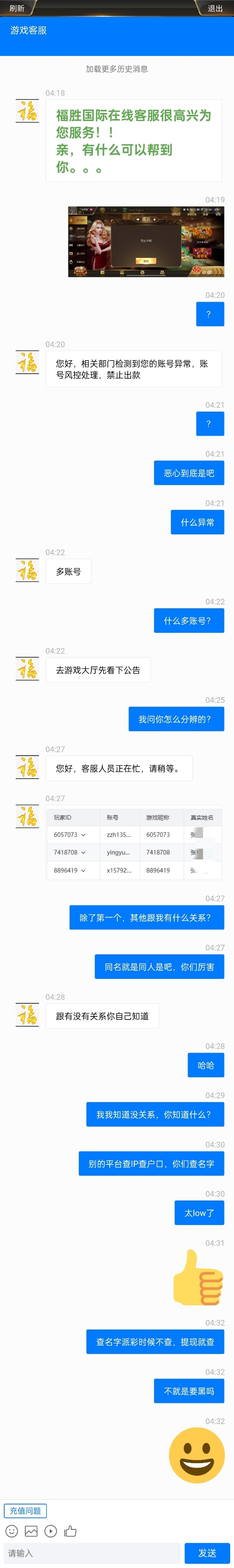 福胜国际200+100申请的时候通过,提现就黑你,比那些多ip不给彩金的恶心多了,我的上级下面我名字的就一个他们随时掏出几个,这种时候上级也没什么用,该黑还是黑,以我为鉴,避雷就好了。