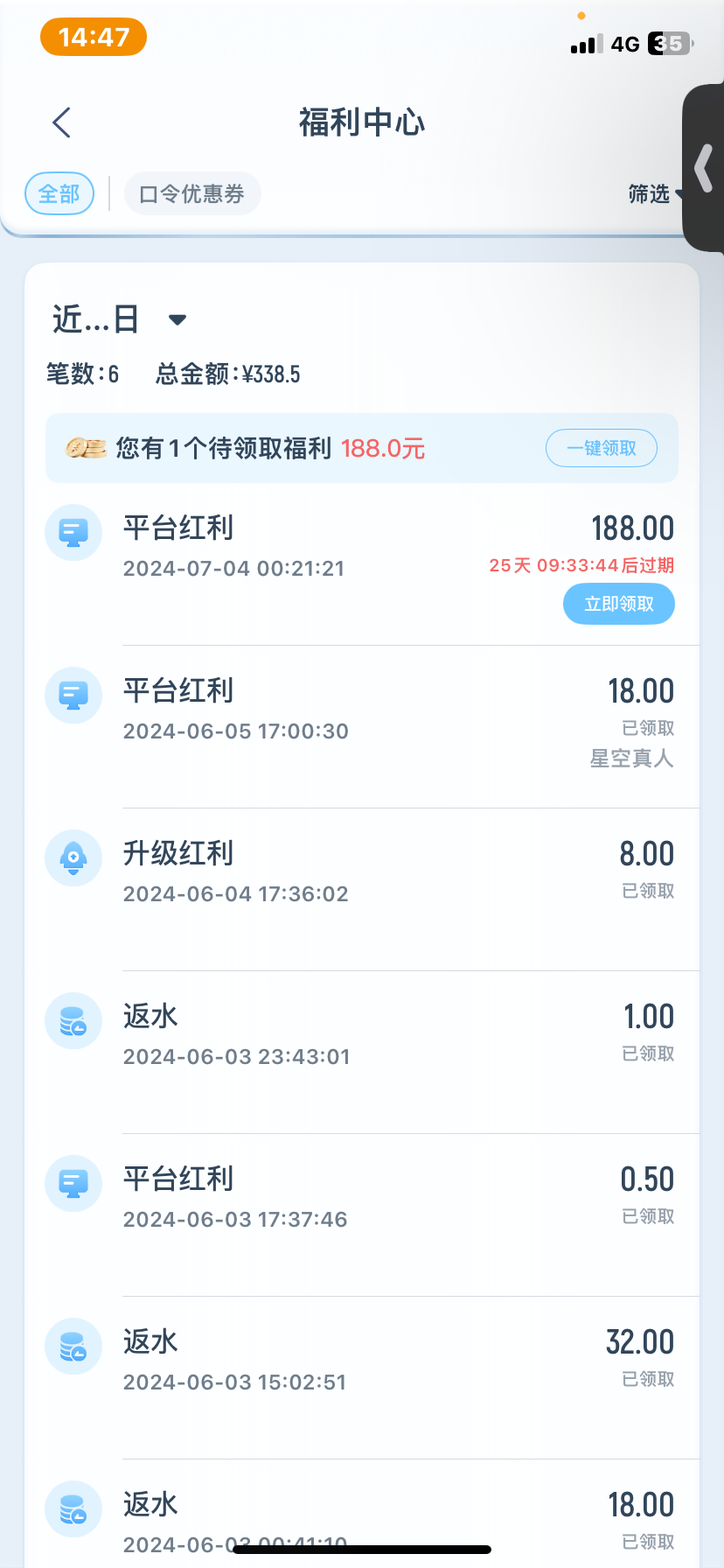 星空领188 有号的可以去看看 今天我无聊点进去看 有188 提款3倍流水 我去打 打出来了 团给兄弟们