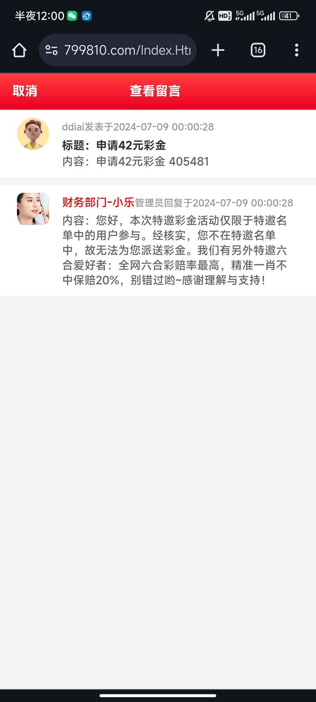 标题:申请42元彩金
