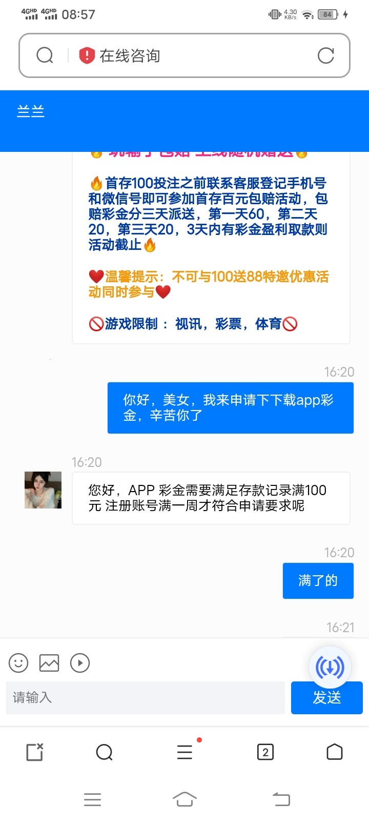 我收到短信了,去问了要充值送,100+88,第一天送58第二天送30,5倍流水