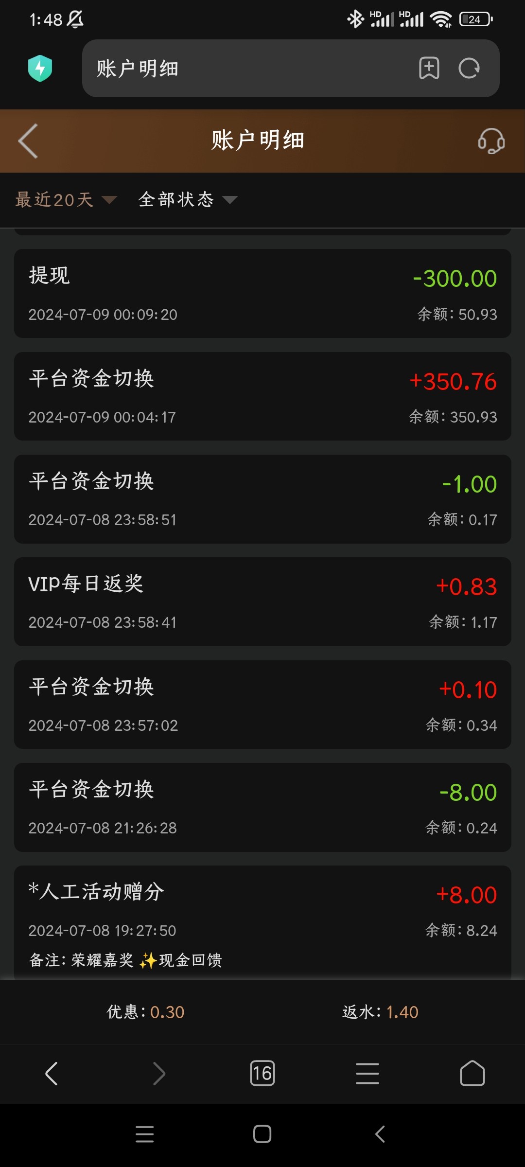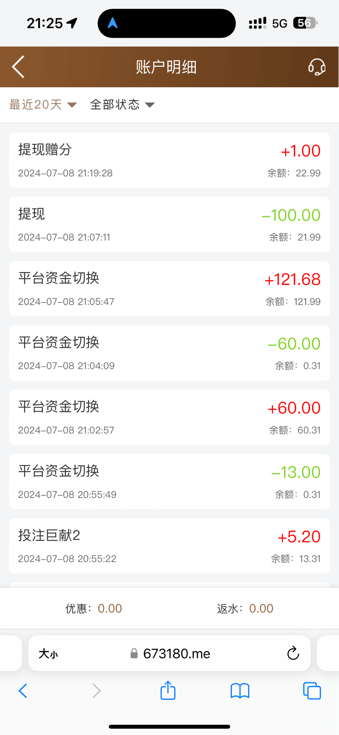 送8进去爆了70,然后一路洗白,半夜牙疼醒了,没事干点开看看有0.8反水,进去0.2一下爆了一堆发财打到17 开一块几下胡了个300多倍 提现10多分钟到