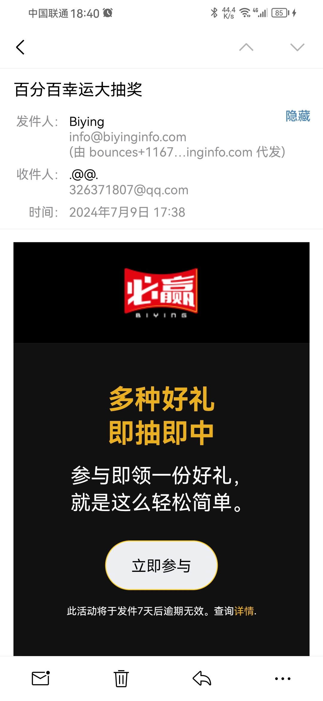 老用户去邮箱找找看有没有