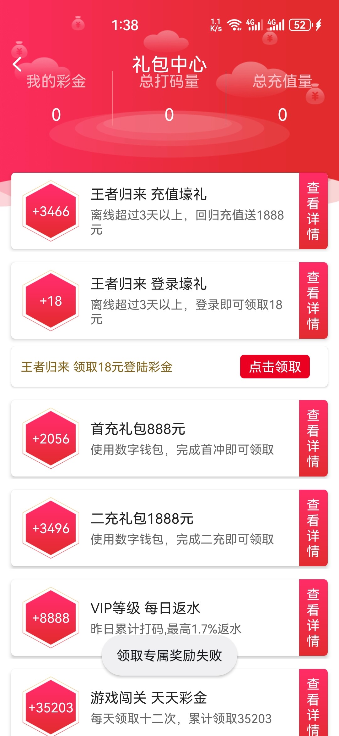 我没充值过,领取不了。