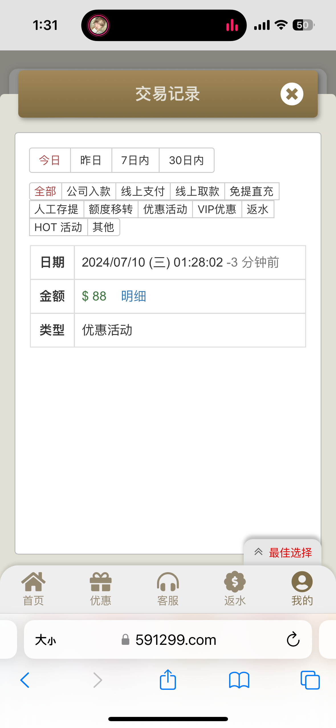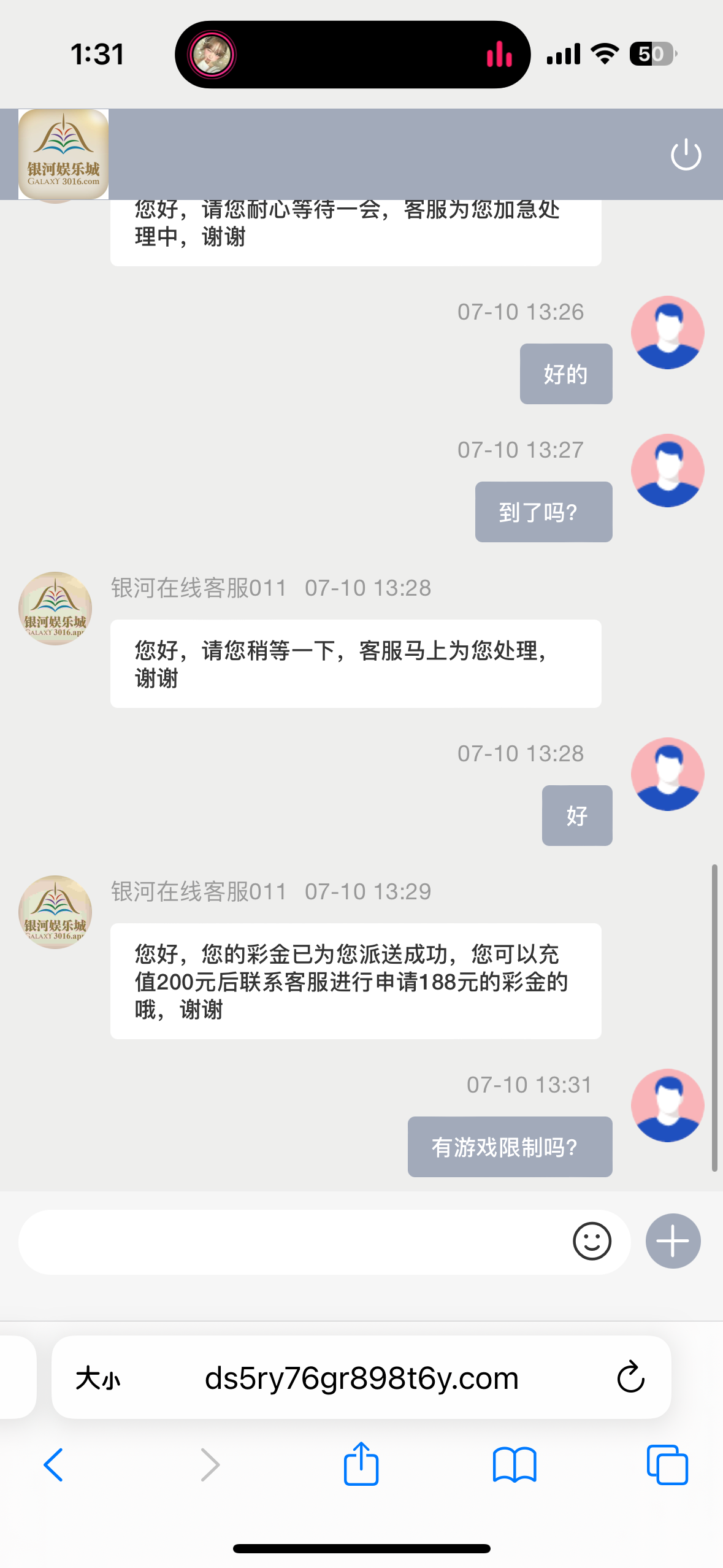 今天没事干浏览贴吧看见老哥推的银河,想起来以前冲过一两千银河,后面打电话送过我58 最近挂逼了到处找彩金,所以我就去银河里面直接找客服说领回归彩金,就是没事干去问问,结果就送了88 没给我打电话也没发短信我直接去要的,银河冲过一千以上这几天没玩儿的可以去看一下, 1倍流水不限制游戏就能出(很人性化,不高倍流水), 老哥推的台出款无忧,祝大家大吉大利 我没打出来想着凑200百家乐就一路连跪了。祝大家旗开得胜哈!