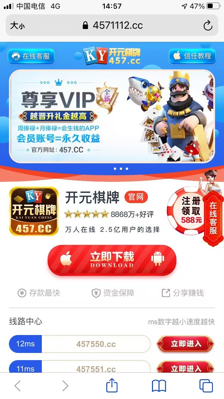 有一个开元,vip2可以签到第一天一块第二天两块累积着上去,然后第7天又回到第一天的,之前有个网址是457.cc但是我进不去了,谁能找到