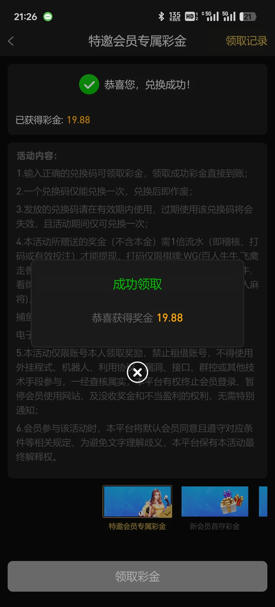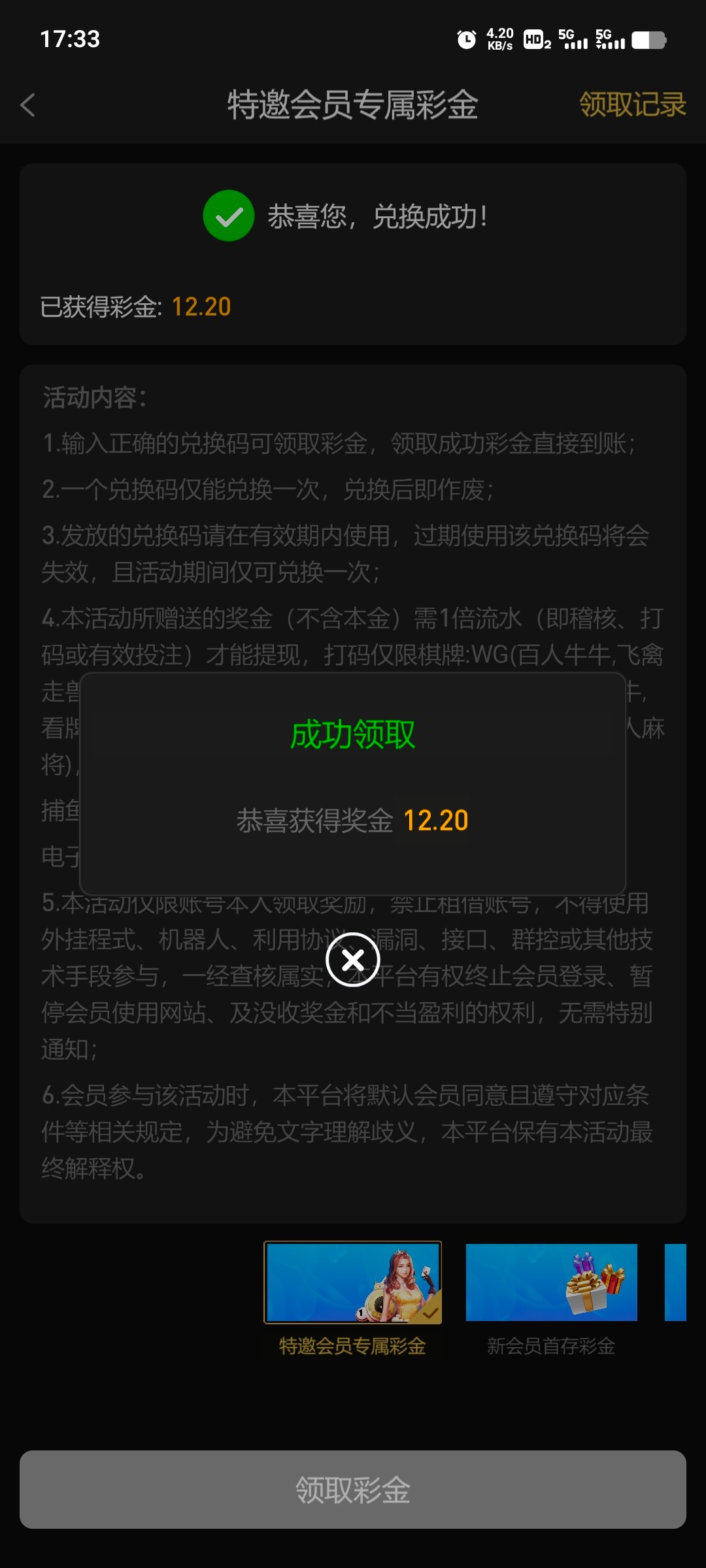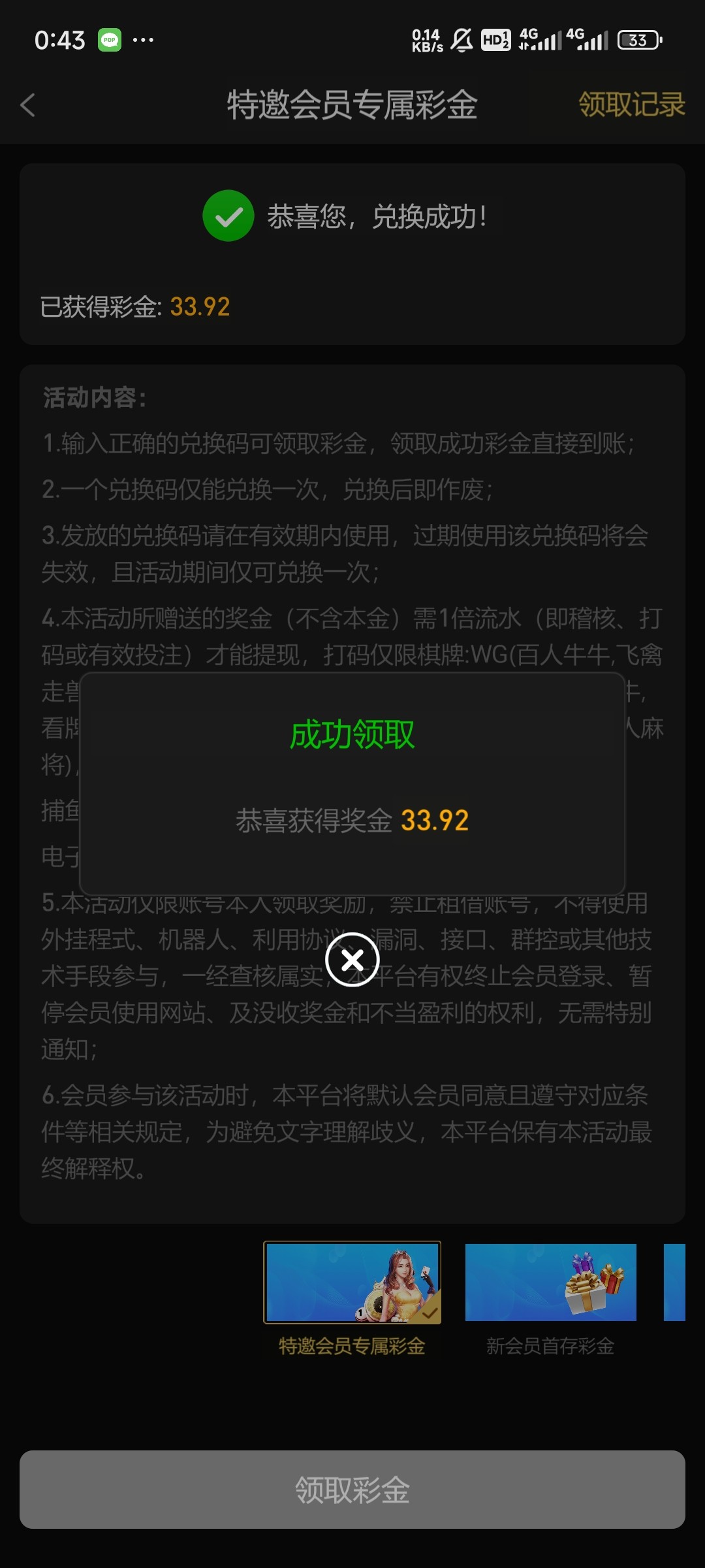 感谢老哥。领到了