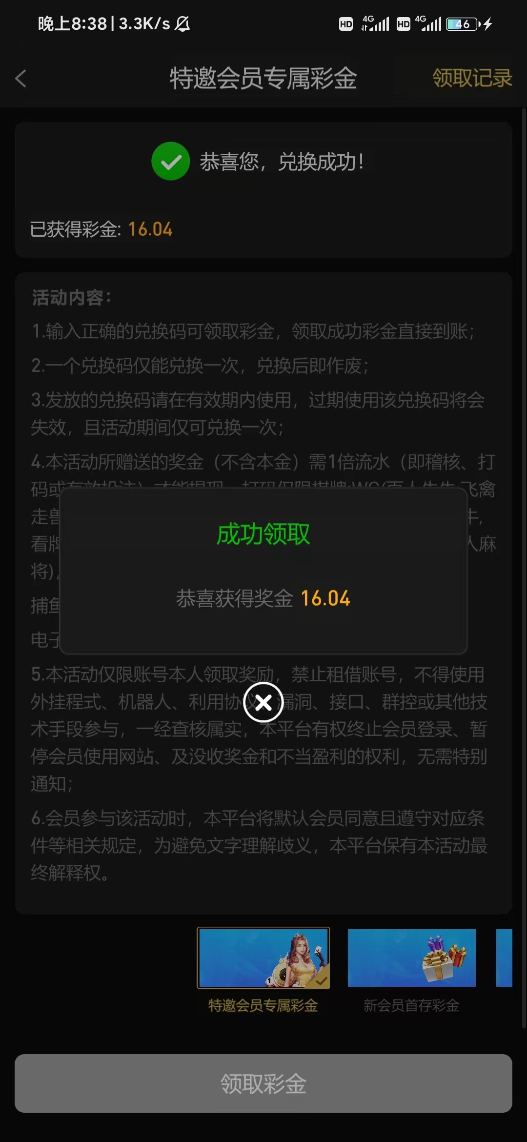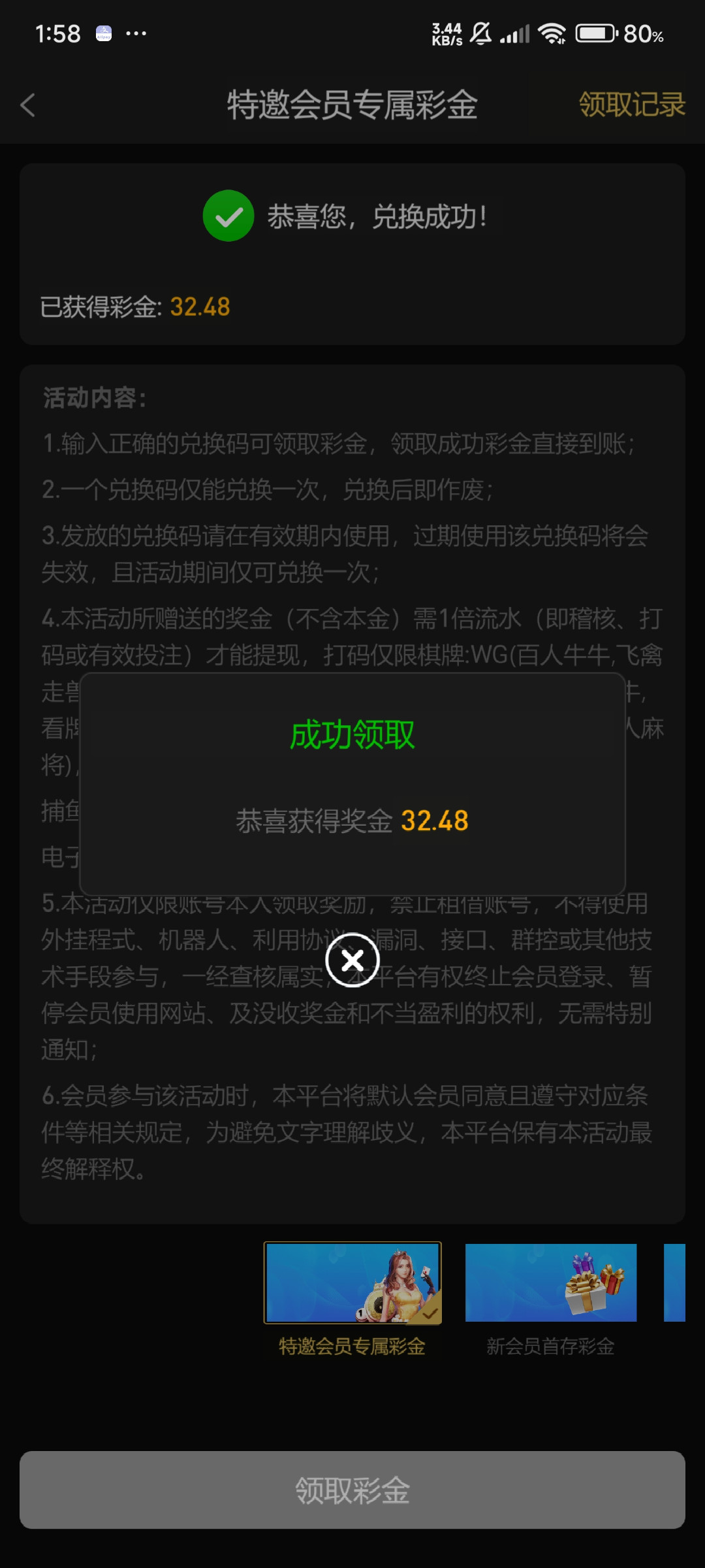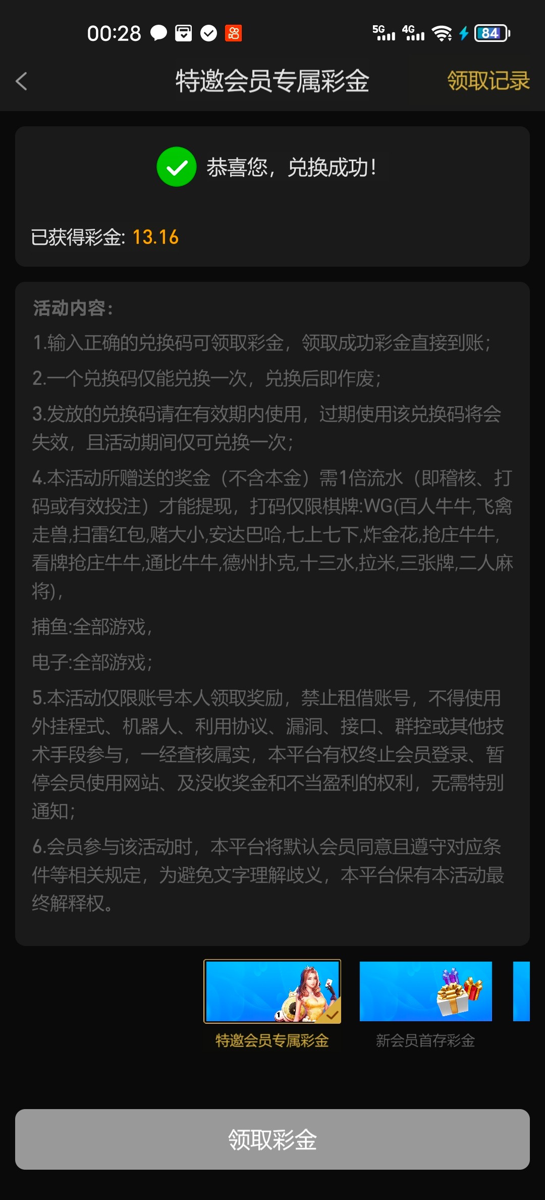 感谢老哥。领到了