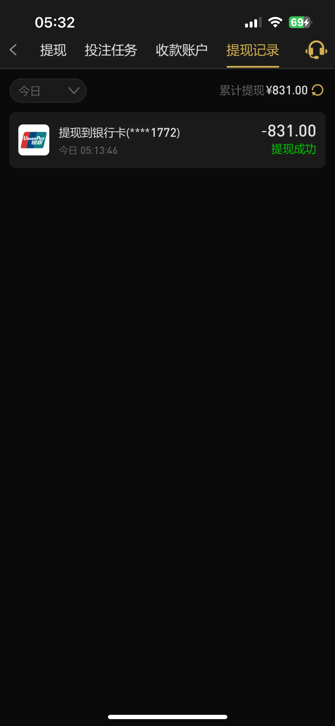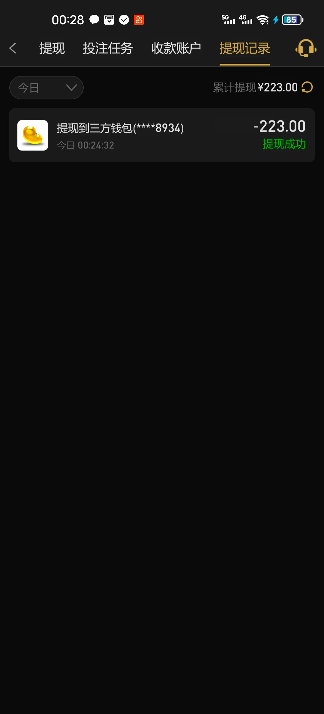 提现到账美滋滋