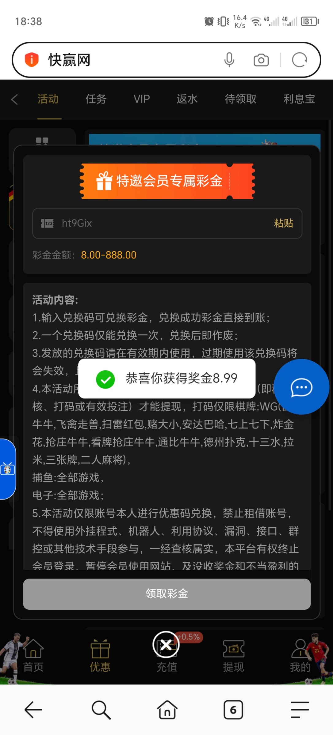 快赢老哥专属代码,去别家注册有这待遇吗?虽说不多但是你去别家有没有代码都不一定