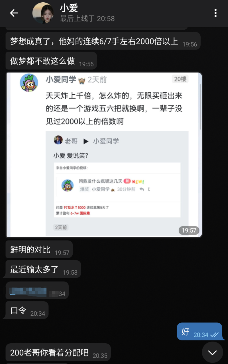 结束后带上消息截图找老哥拿现金