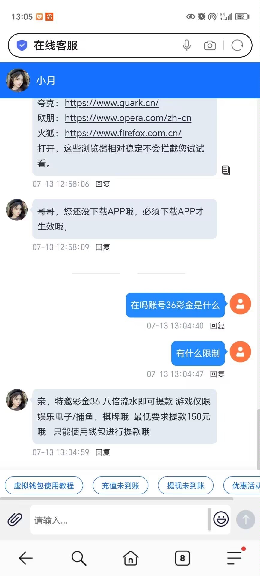 感谢 以前注册的,手机号绑定忘了账号了,找客服提供手机号账号也找回了 也送了36 就是打的太费劲 勉强出了150 提钱能秒到