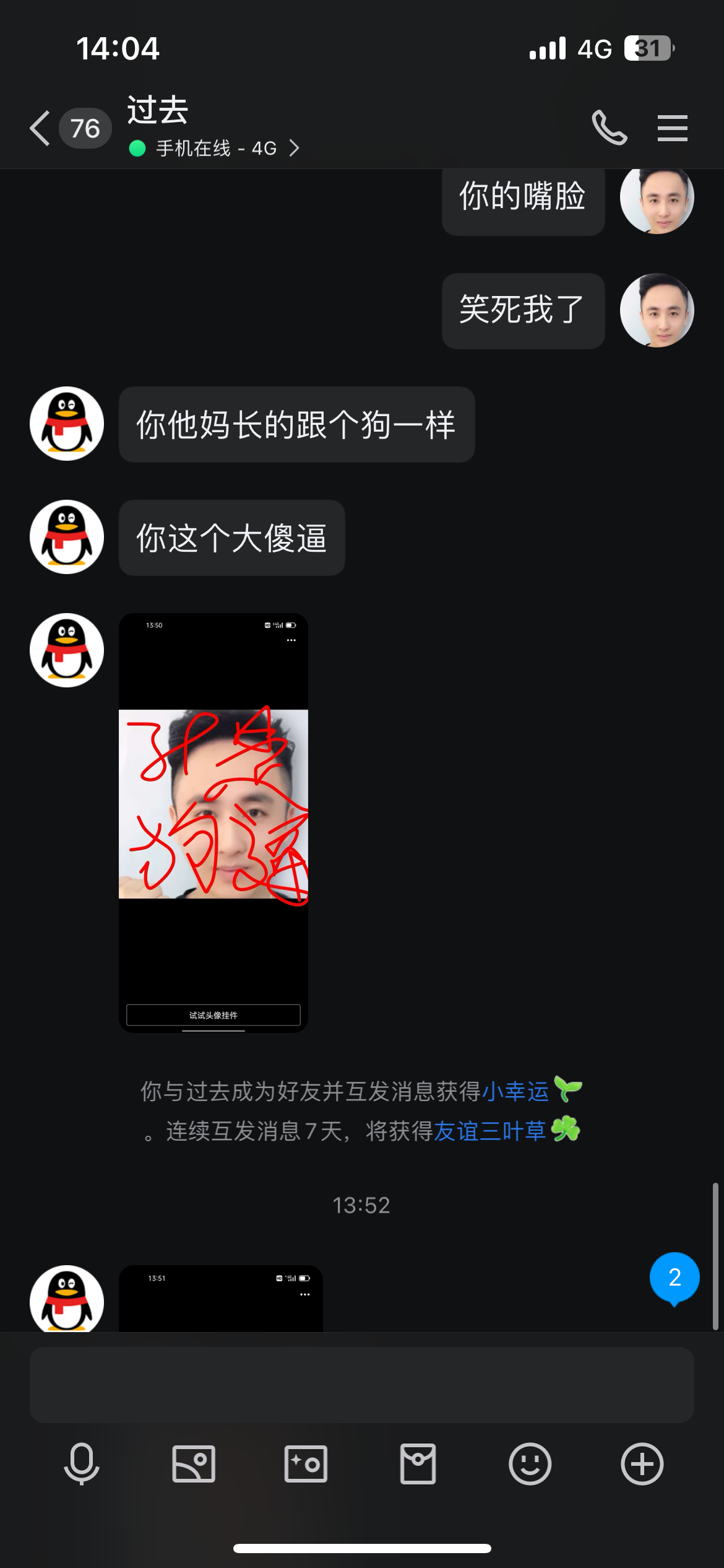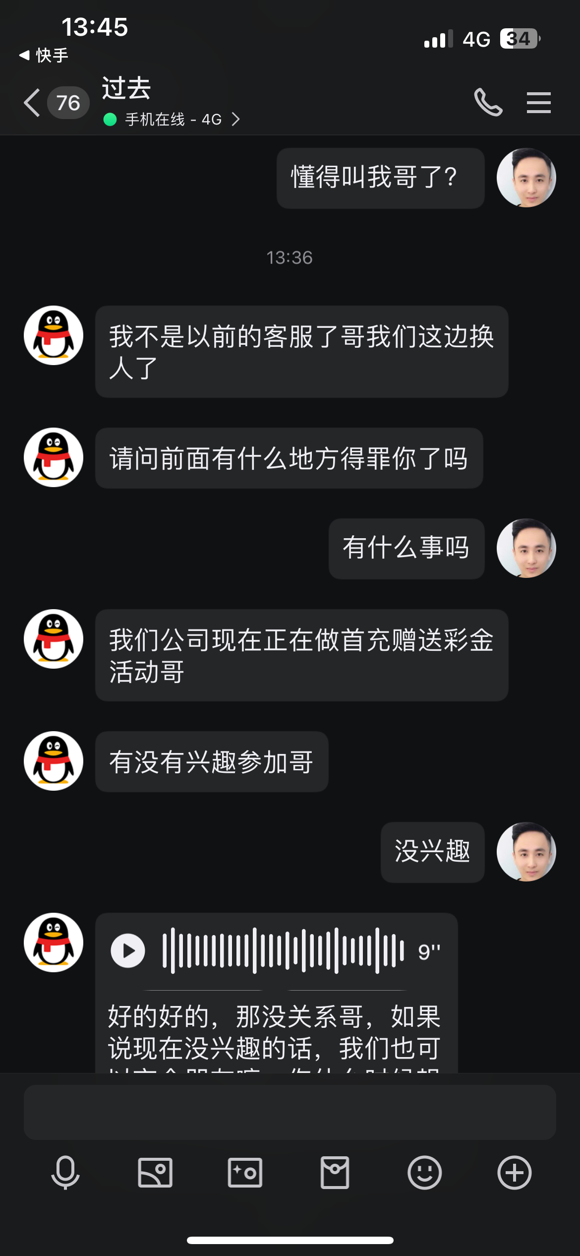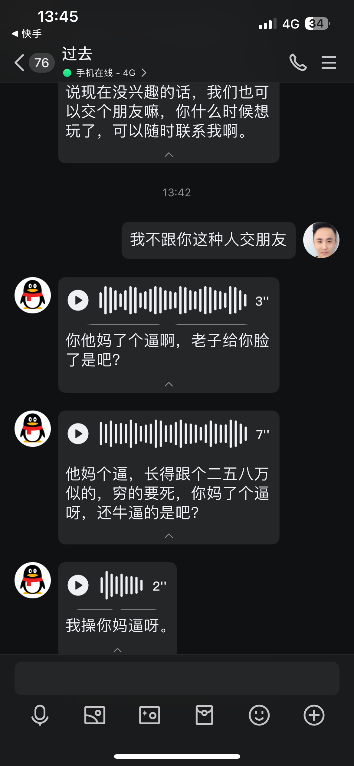今天突然叫我哥了 不充钱就直接骂人这个平台真垃圾