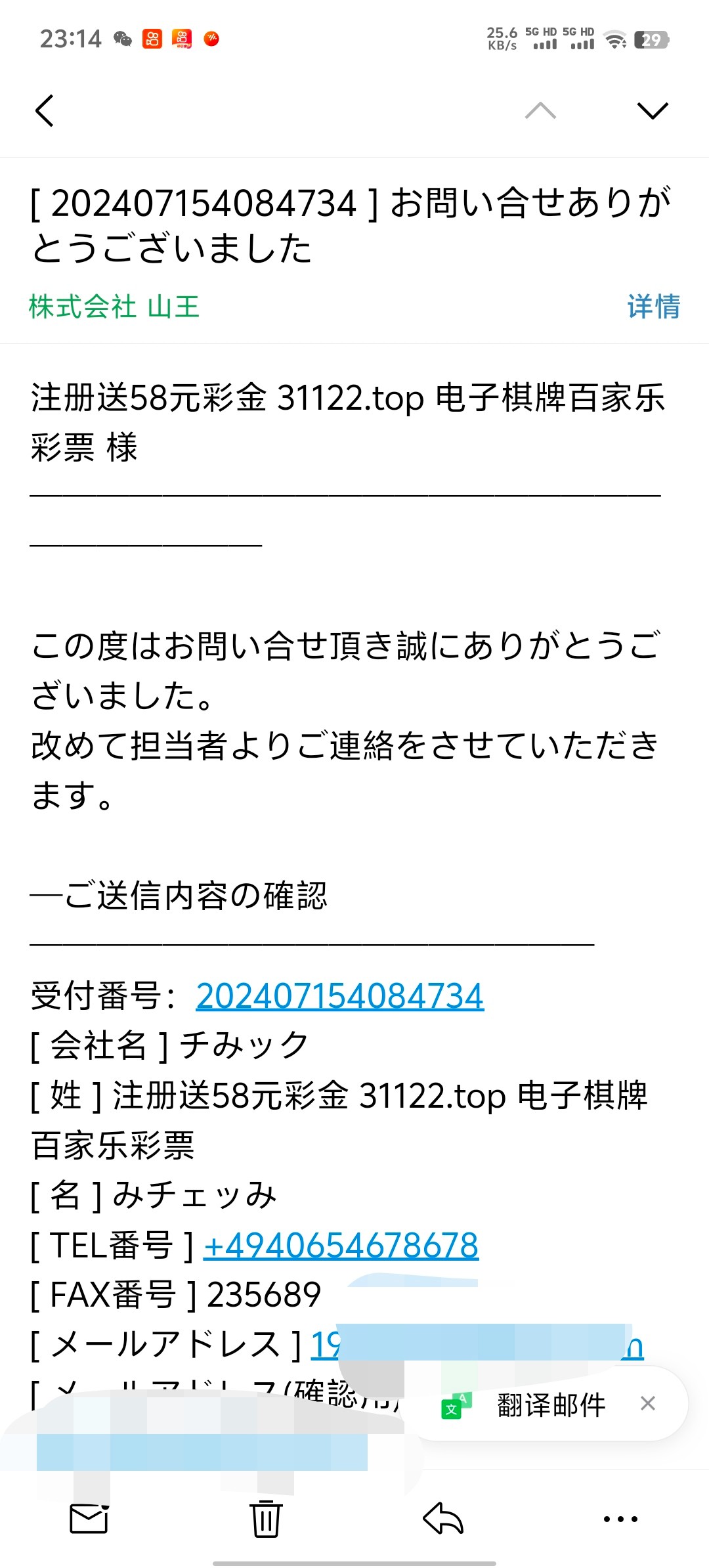 没有,我之前也是半小时回信息