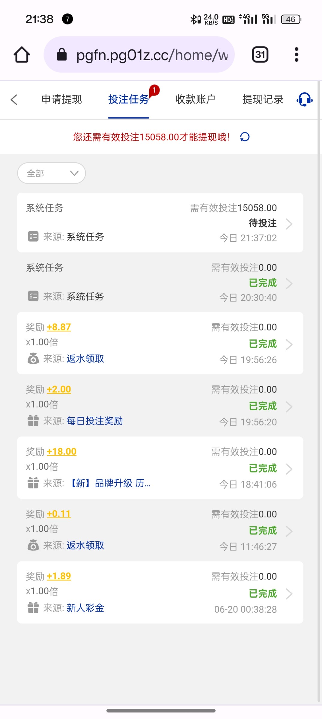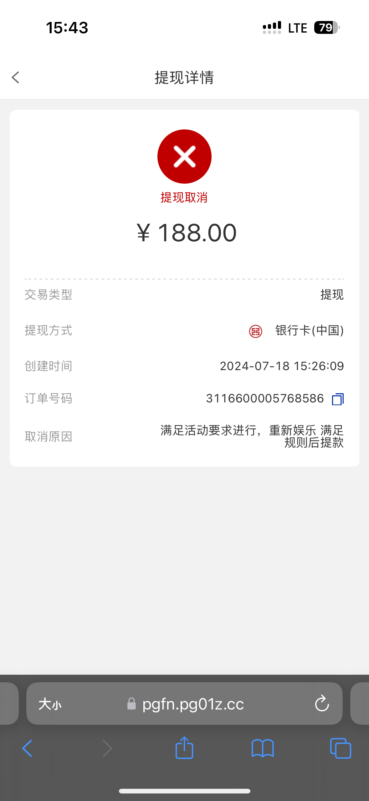 提现4次都被退回来,叫我玩wg电子十倍水,然后我就玩了一会wg电子,就去玩棋牌上到500块钱我在试一下提188结果一会就到了,还有300提现可能也到不了。