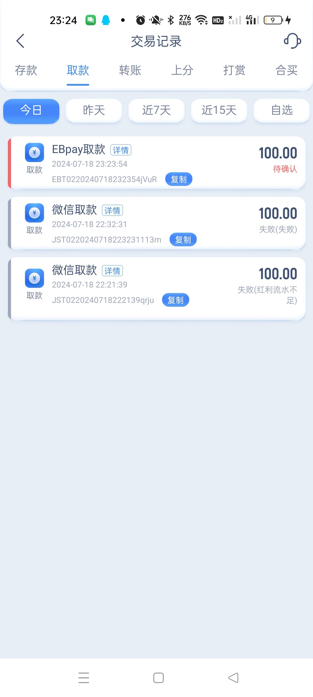 丧彪 ▶ 丧彪 好的 刚刚微信都显示带出款了 过了十分钟又变成处理中 后面直接失败 现在换钱包看看 2024-7-18