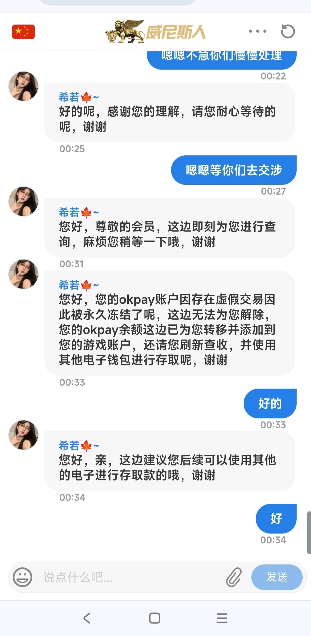 这三家不是说都是一家公司吗,我前段时间批图go马上给我冻结号了,里面还有一份猪脚饭,卧槽。然后紧接着我的ok也上不去了,找了ok客服他说我的账号被系统检测有风险已被永久禁用,也没有说我因为批图gopay所以被禁用的。过了两天我有一笔款没钱包提,提到to了,但是也冻结了,我找到平台说钱包被冻结了,刚刚提现的钱充值不进来了,问他怎么搞,他说让我联系上级处理,我找上级说明情况,他说他去交涉。有答复会告诉我。然后等了一整天也没有消息我以为完了。就没管他了,因为里面只有刚提进去的370。又过了两天,就是第三天的上午上级发消息说已经处理好了,让我重新登陆充值就行。没想到这么简单。我马上登录充值干去了。时至今日已经10来天了,to依然正常的,就是我的go.还有ok不能用了。看来还是要找专业的狗庄还是能处理这个钱包的问题的。