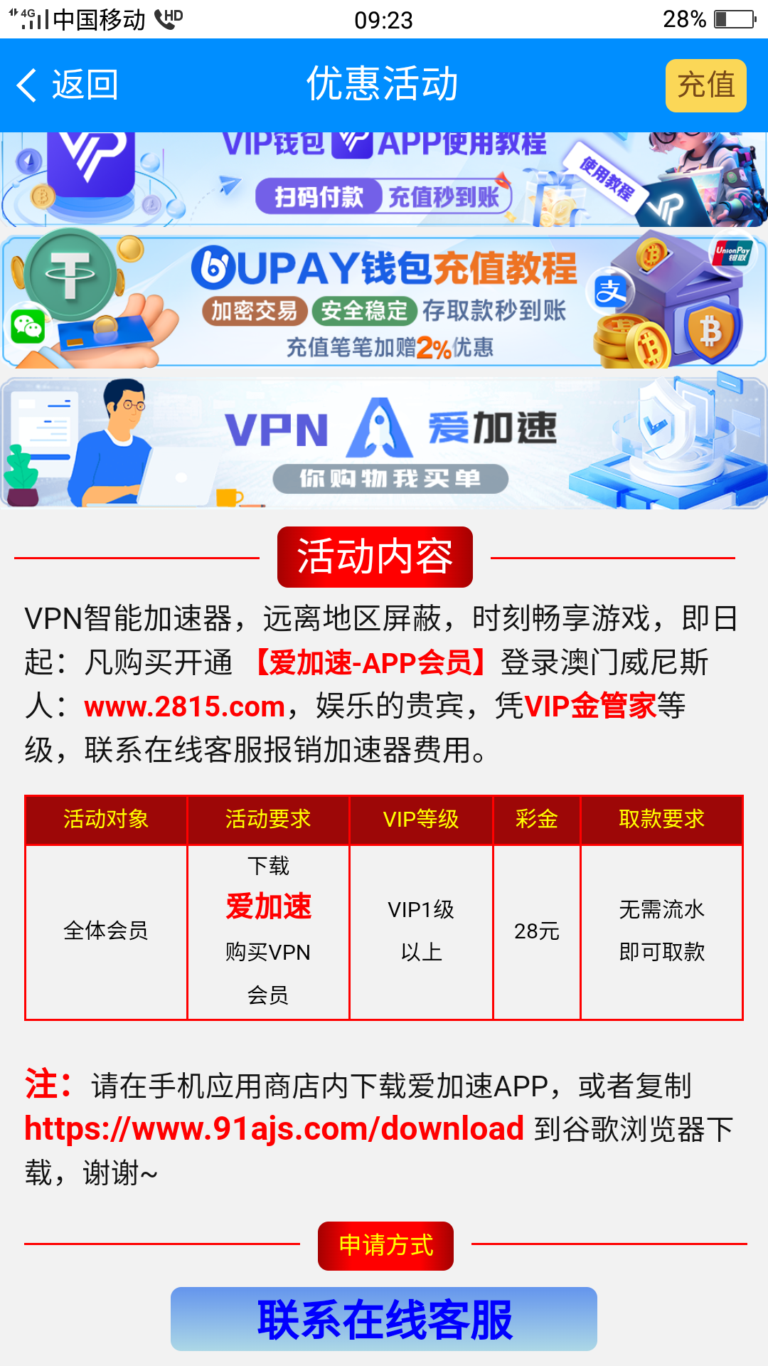 新号无视,2815威尼斯有号的vip等级1的 开个加速器领28 开一天的只要1元